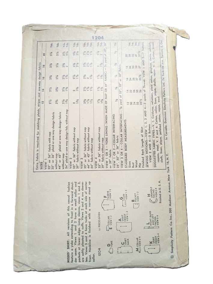 12/30 VINTAGE 1950s SEWING PATTERN Simplicity 1204 Blouses