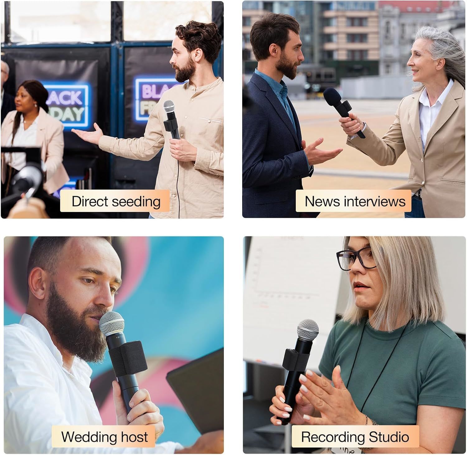 APPLICABLE MODEL: The size is customized length and width according to DJI Mic, perfect fit for DJI Microphone, meanwhile the elastic on the other side is suitable for most of the handheld microphones on the market. APPLICABLE MODEL: The size is customized length and width according to DJI Mic, perfect fit for DJI Microphone, meanwhile the elastic on the other side is suitable for most of the handheld microphones on the market. Dual holes design: separate compartment holes for handheld microphone and recorder, one for handheld microphone and one for recorder/wireless microphone. Dual holes design: separate compartment holes for handheld microphone and recorder, one for handheld microphone and one for recorder/wireless microphone. Material and elasticity: The nylon elastic band can wrap the wireless recorder well, and at the same time can be firmly fixed on the microphone, which can easily allow you to conduct interviews, recordings and speeches for a long time. Material and elasticity: The nylon elastic band can wrap the wireless recorder well, and at the same time can be firmly fixed on the microphone, which can easily allow you to conduct interviews, recordings and speeches for a long time. CONVENIENCE: Adapt to most of the handheld microphones and wireless microphones on the market. Free your hand, no need to hold multiple microphones tightly in one hand and worry about slipping. CONVENIENCE: Adapt to most of the handheld microphones and wireless microphones on the market. Free your hand, no need to hold multiple microphones tightly in one hand and worry about slipping. SCENARIO: This is a multi-functional professional microphone elastic sleeve for desktop applications, suitable for singing, screencasting, studio, podcasting, video chatting, meetings, speeches, broadcasting, live interviews, etc., suitable for carrying around. SCENARIO: This is a multi-functional professional microphone elastic sleeve for desktop applications, suitable for singing, screencasting, studio, podcasting, video chatting, meetings, speeches, broadcasting, live interviews, etc., suitable for carrying around. Product list: elastic band * 2 (does not include any type of microphone, voice recorder) Product list: elastic band * 2 (does not include any type of microphone, voice recorder)