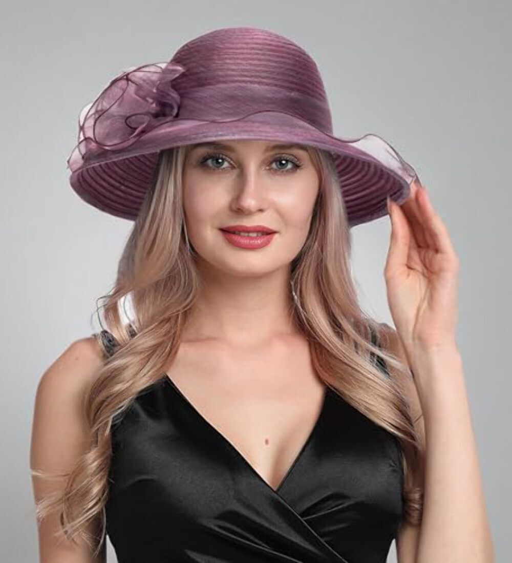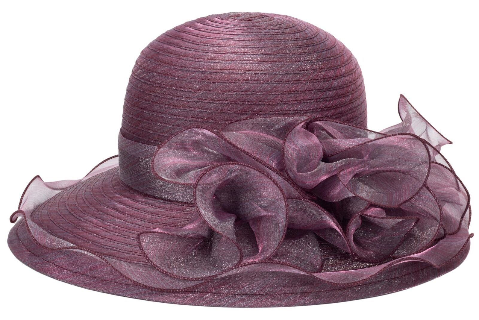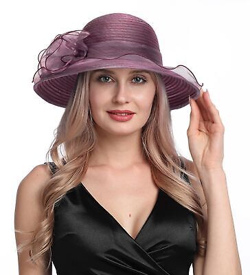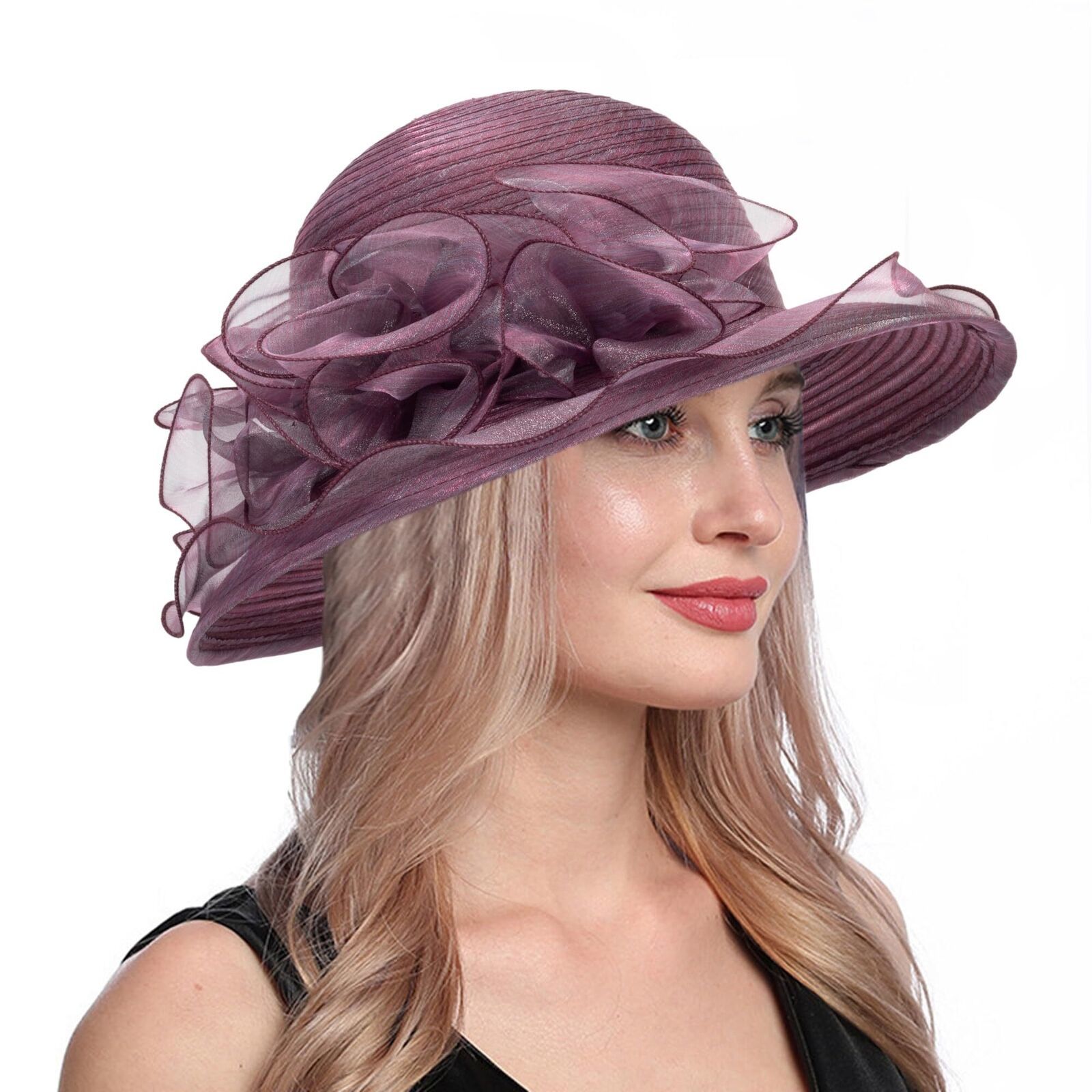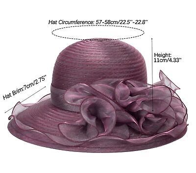 Color: Darky PurpleFeatures: Excellent Church Hats--- High quality organza, Polyester and Satin. Super lightweight High Quality will not make you feel heavy. Size for This Wide Brim Hat--- Size for the most women,This fascinator cap for women is suitable for head circumference 22inch ~22.8inch, Wide Brim 3.5 inch. Inside sweatband drawstring can adjustable to size-fit to your head. Double Layer Design--- organza and gauze, suitable for spring, summer , autumn. Wide brim, lightweight, elegant and charming designed, floral, mesh etc and you can decorate it for yourself. Leisure and formal integration, fantastic floral church hats for daily used. Perfect for wear a fancy event--- Wear to Wear to Church, Twenty's Parties or Picnics.Church hat, Wedding hat, Derby hat cap, floral organza Hat, Lady hat, Sun hat,summer hat, beach travel hat. Occasion:Church/Kentucky/Wedding/race day/Tea party/Twenty's Parties or Picnics. Great for ladies, teens and girls. Details: Description Cleaning and Maintenance--- For the first time using, Warmly suggest you use hair dryer to trim or steam ironing it ,make sure that the shapes of hat looks more high-end and elegant. Do not wash frequently. Please put it in dry and clean place if you don't wear.Package Dimensions: 12.1 x 11.1 x 5.2 inches