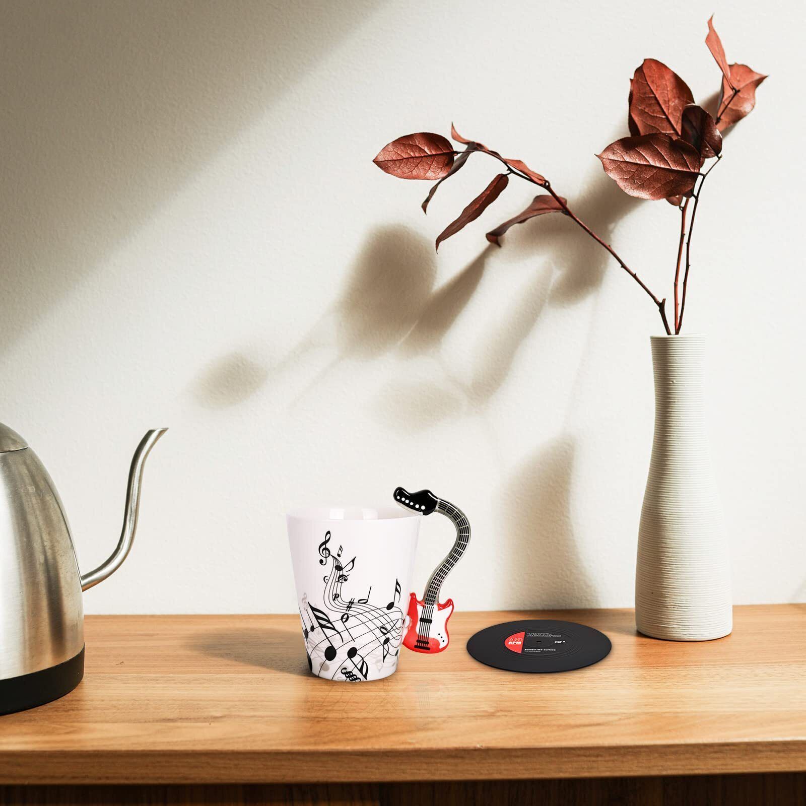 Maustic Guitar Mug, Music Gifts for Men Women, Guitar Gifts for Guitar Players, Christmas Birthday Gifts for Music Lovers, Music Teacher Gifts, Ceramic Mug 13 Oz with Vinyl Record Coaster (Red Guitar)
