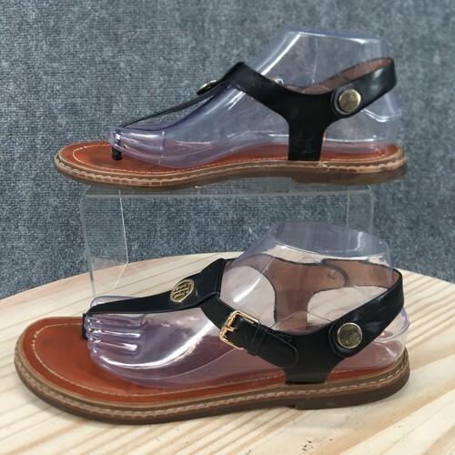Tommy Hilfiger Bennia - Women's Shoes : Black LL : Warm up into the season with the Tommy Hilfiger Bennia sandal. ; Faux-leather upper. ; Three-point vamp strap. ; Adjustable buckle at ankle. ; Open-toe design with brand logo detail at instep. ; Synthetic lining. ; Lightly padded footbed. ; Rubber outsole. ; Imported. Measurements: ; Heel Height: 1 2 in ; Weight: 7 oz ; Product measurements were taken using size 8.5, width M. Please note that measurements may vary by size. | Tommy Hilfiger Bennia Women's Shoes Black LL : 10 M, Manmade.