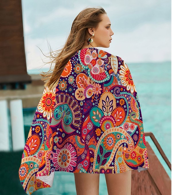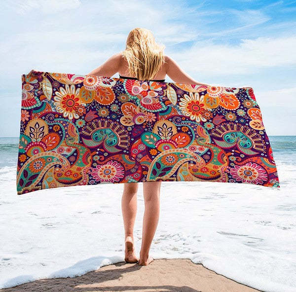 Colorful beach towel, engineered for sand to slip off easily. Rapid-drying, half the time of a regular towel. Length: 70cm/27.5 in Width: 35cm/13.7 in.