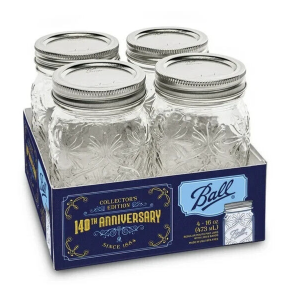 Ball Regular Mouth 140th Anniversary Keepsake Jars 4-Pc 16oz Pint Food Craft NIP