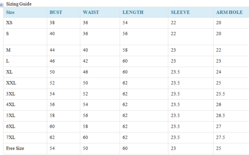 Size: We make all the sizes and customized size. Before you confirm please check the size chart as given in the image and confirm your size