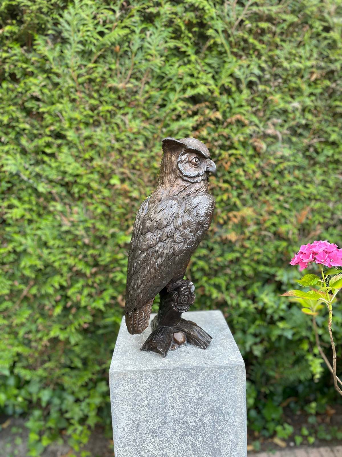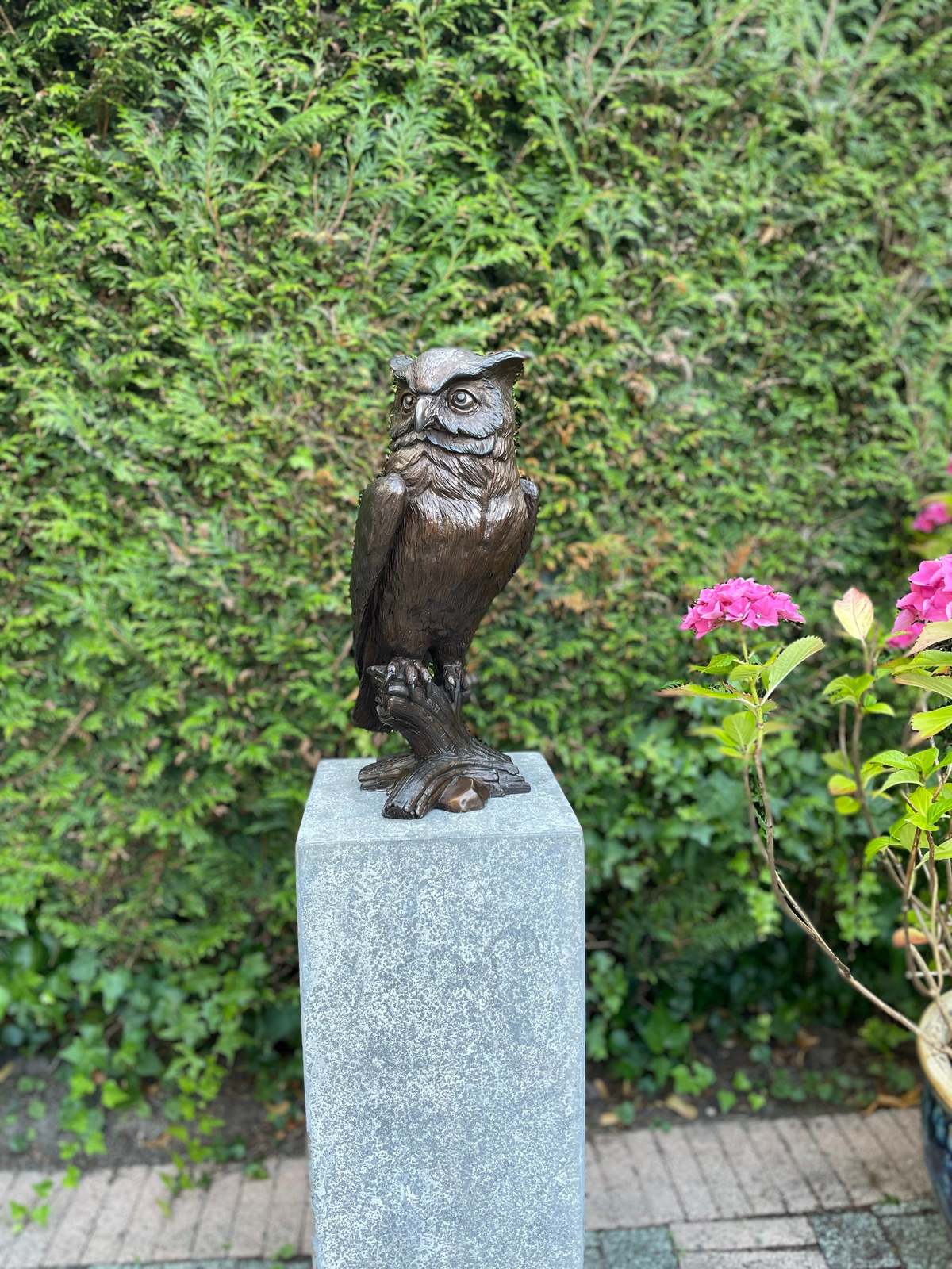 Elegant bronze owl sculpture with lifelike detail – 20x17x42cm - 6Kg