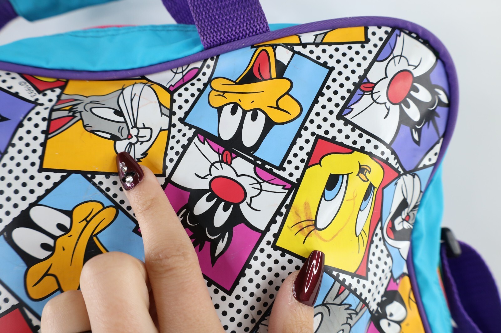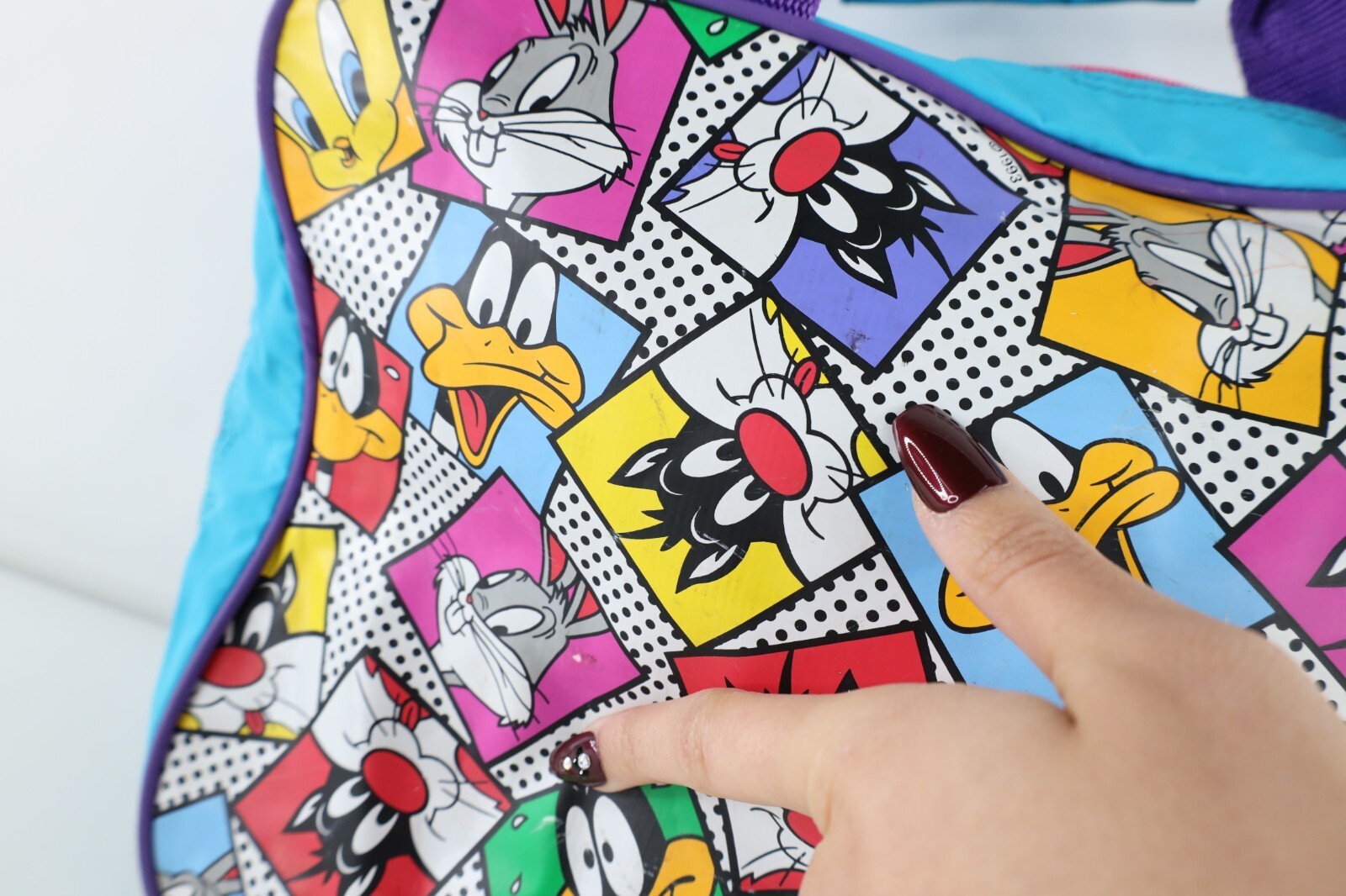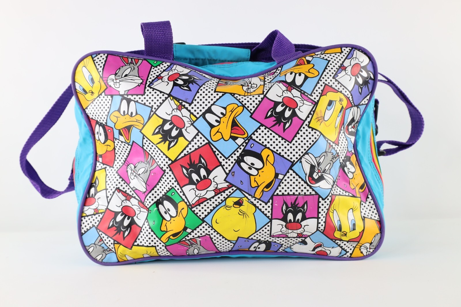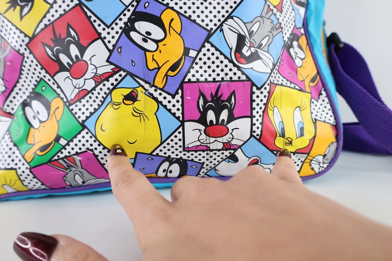 Vintage 90s Distressed Looney Tunes All Over Print Crossbody Bag Pack Carry On