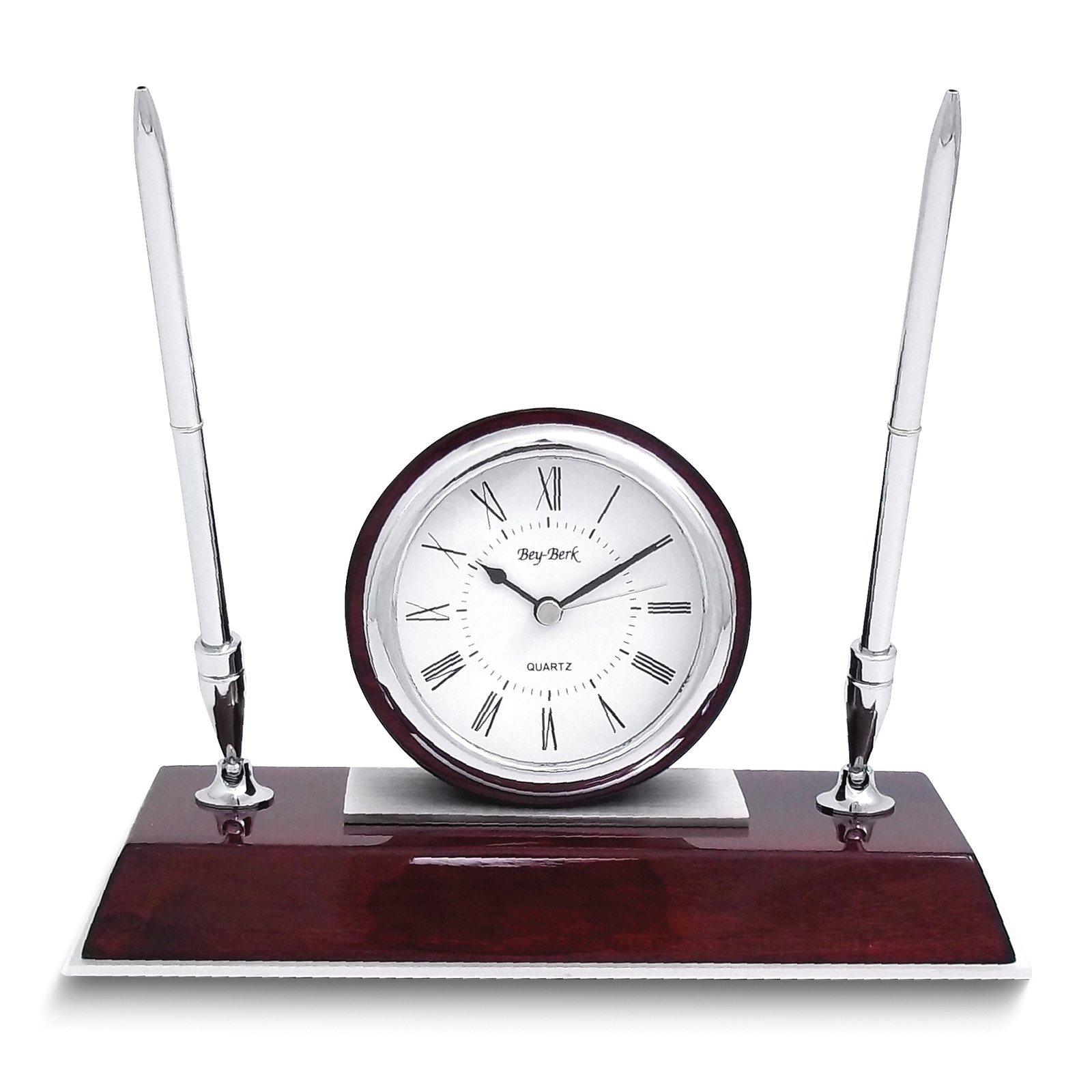 Dresden Polished Rosewood Finish Quartz Desk Clock with 2 Pens and Engraving Pla