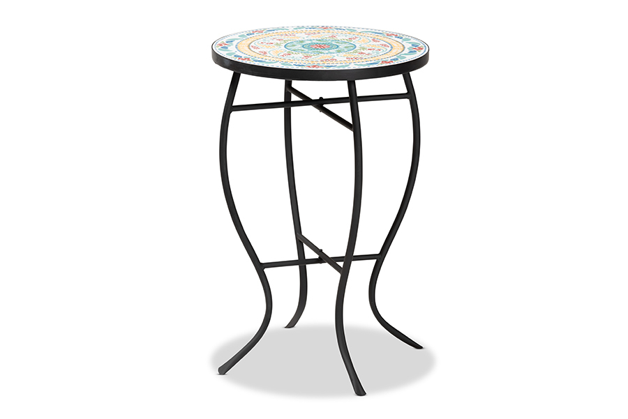 Seraphin Black Metal and Multi-Colored Ceramic Tile Plant Stand