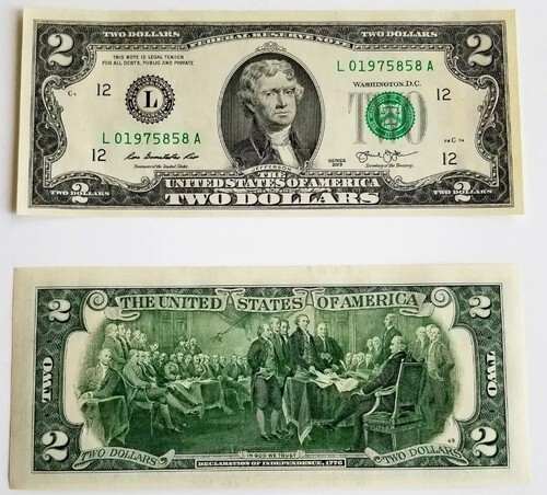 JULY 4th Independence Day Genuine Legal Tender US $2 Bill 2-SIDED w/COA HOLDER