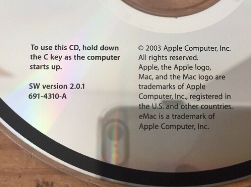 2003 Macintosh Mac eMac Hardware Test Version 2.0.1 Diagnostic CD-ROM disc