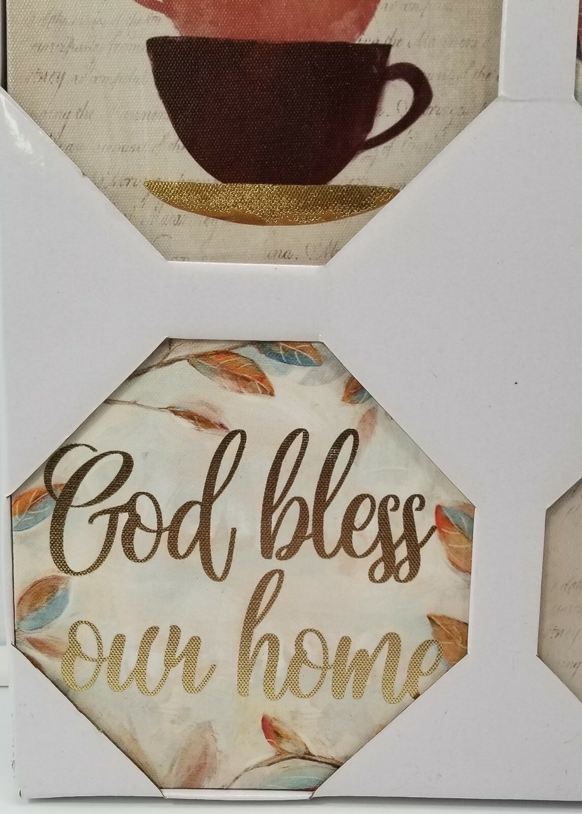 Set of 4 Printed Canvas w Foil Coffee