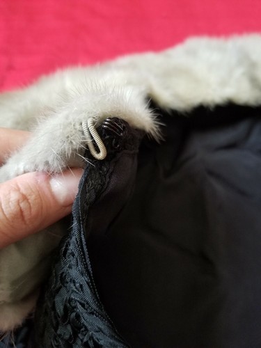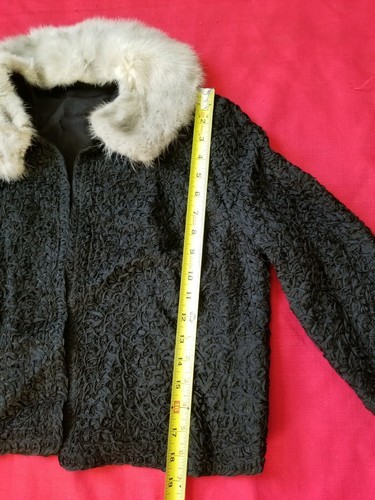 Vintage 1950s-60s Black Ribbon Soutache Crop Jacket Mink Collar