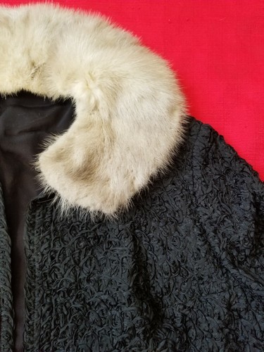 Vintage 1950s-60s Black Ribbon Soutache Crop capelet Jacket Mink Collar S