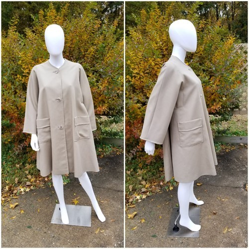 This is beautiful Trapeze iconic 50s trench coat in oversized look. Classic gem that looks amazing on, and can fit an array of sizes due to the natural fit of a trapeze jacket. Couture quality, with heavy attention to detail. Can easily be dressed up or down. Great with jeans, or over a dress or gown. In great condition.