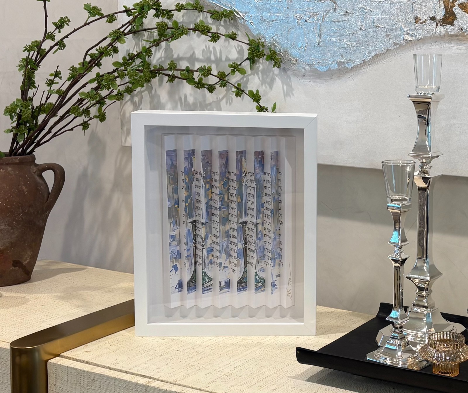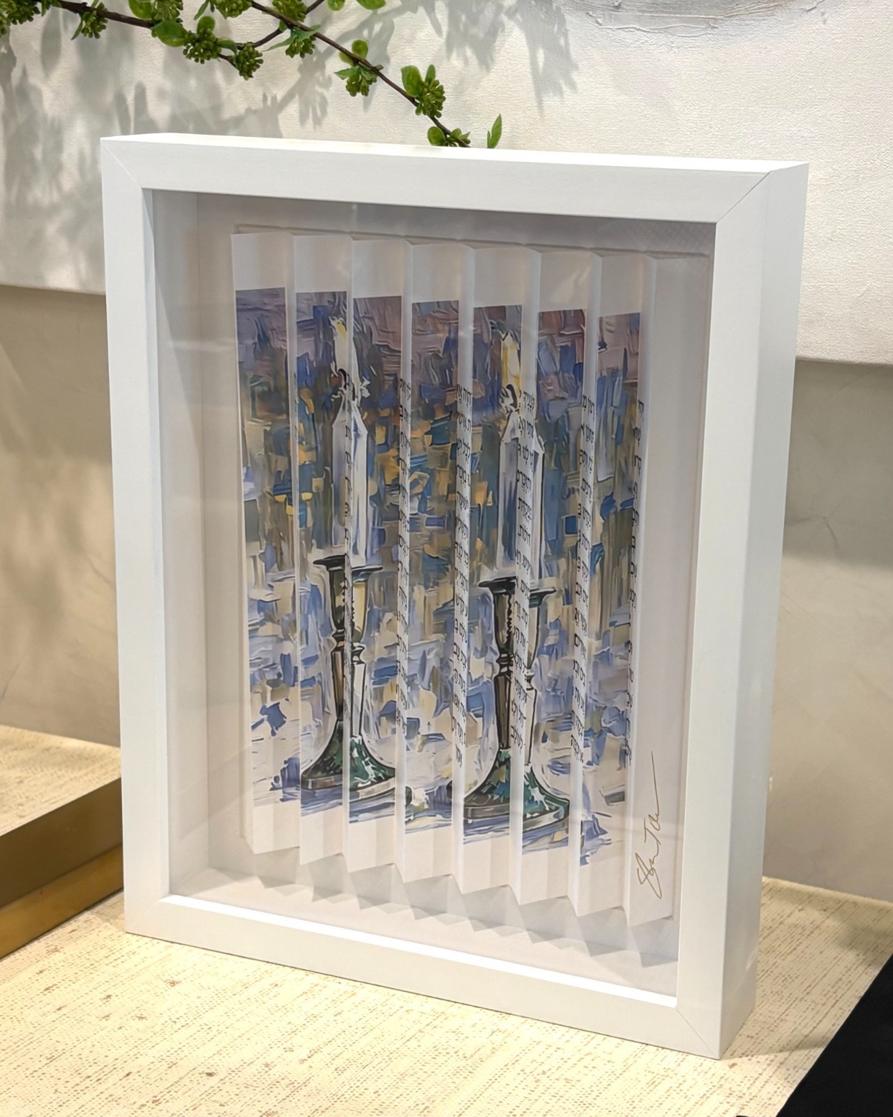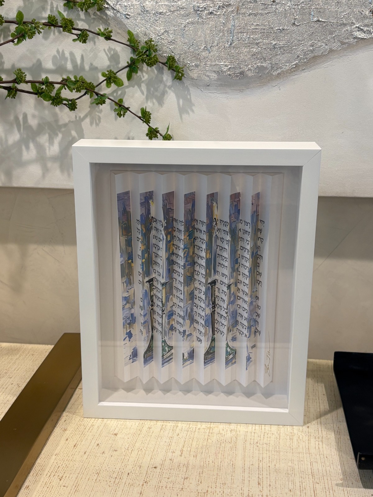 SHEM TOV "CANDLES WITH PRAYER" ORIGINAL 3D SCULPTURE FRAMED HAND SIGNED COA