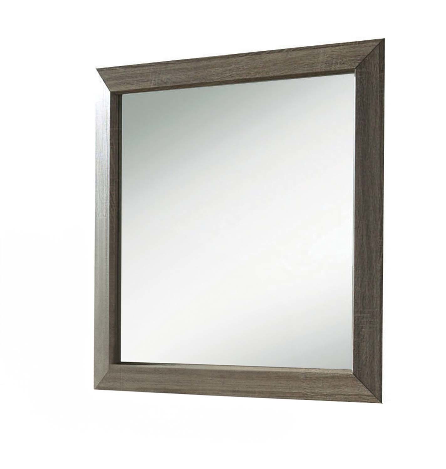 The Lyndon mirror in weathered gray grain finish with back support. Create a welcoming and warm appeal in your master bedroom with the rustic mirror. The clean lined design brings a relaxing and interesting environment.