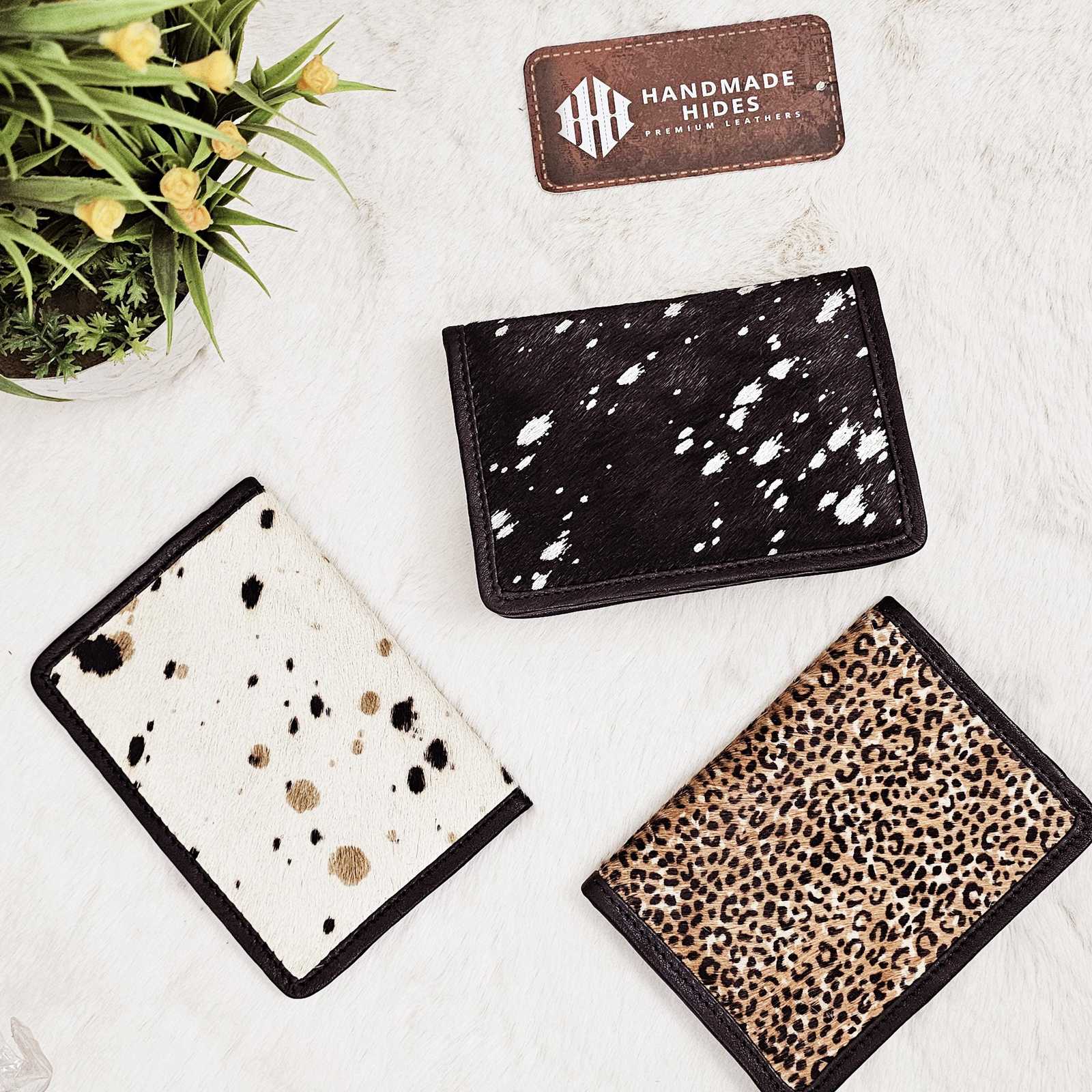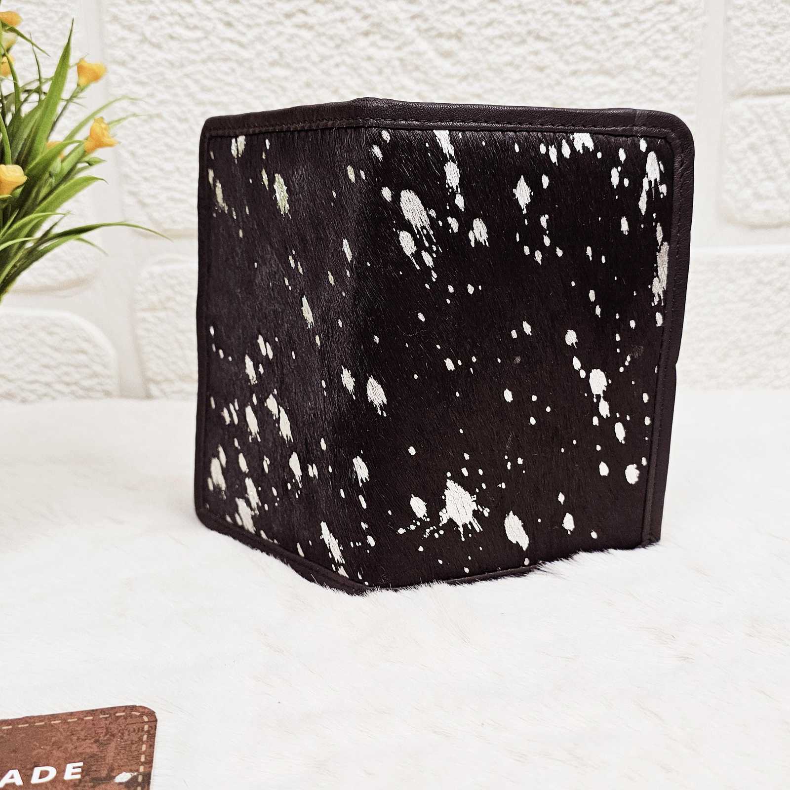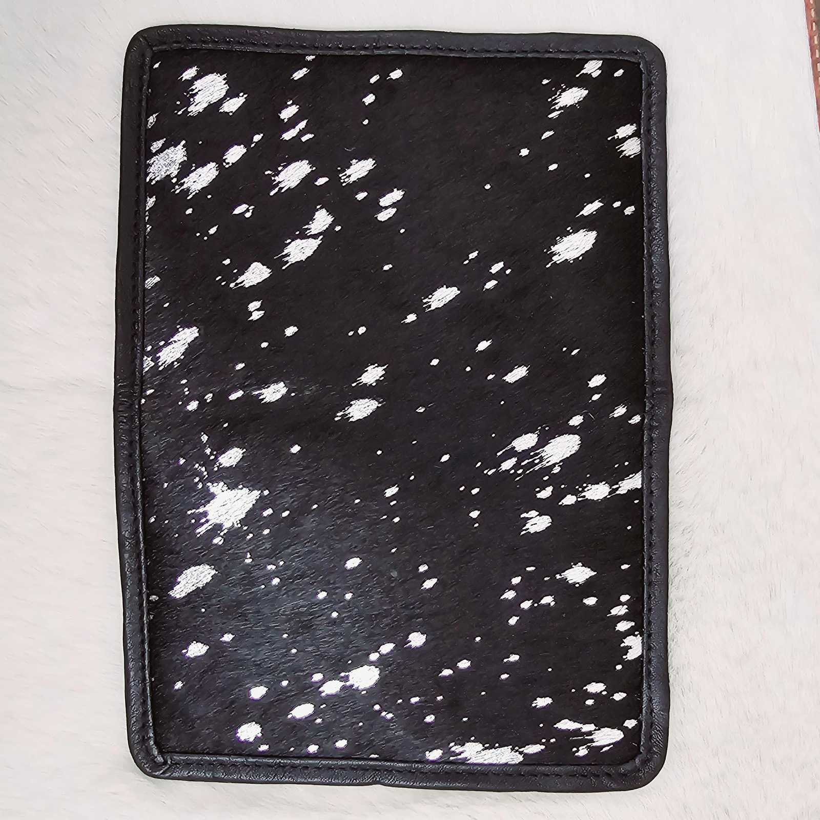 Add a touch of luxury to your journeys with this handmade hair?on?hide leather passport holder. Crafted from ethically sourced cowhide with a genuine black leather interior, each piece is unique—featuring natural hide patterns that make every wallet truly one?of?a?kind.