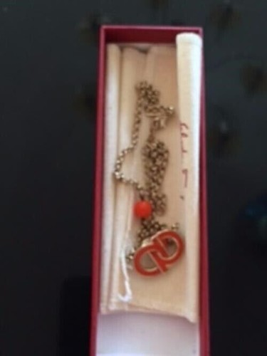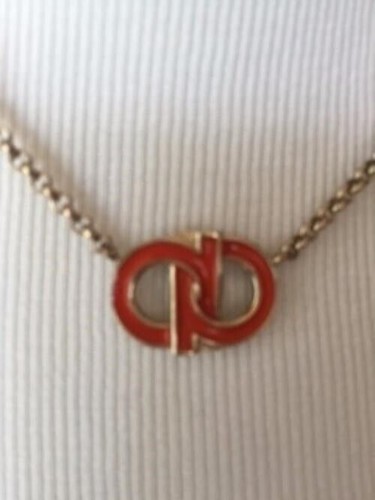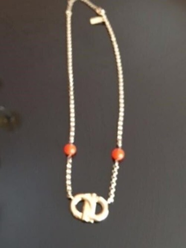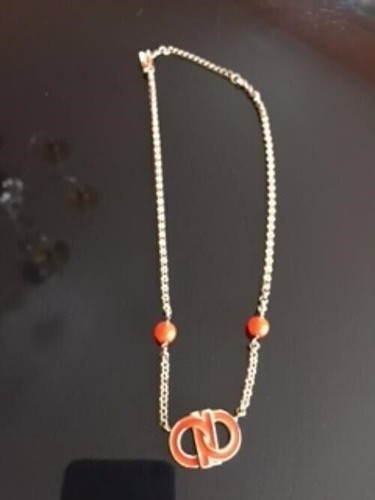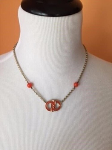 VTG SALVATORE FERRAGAMO Intertwined Gancini Charm Orange Bead Necklace 18''