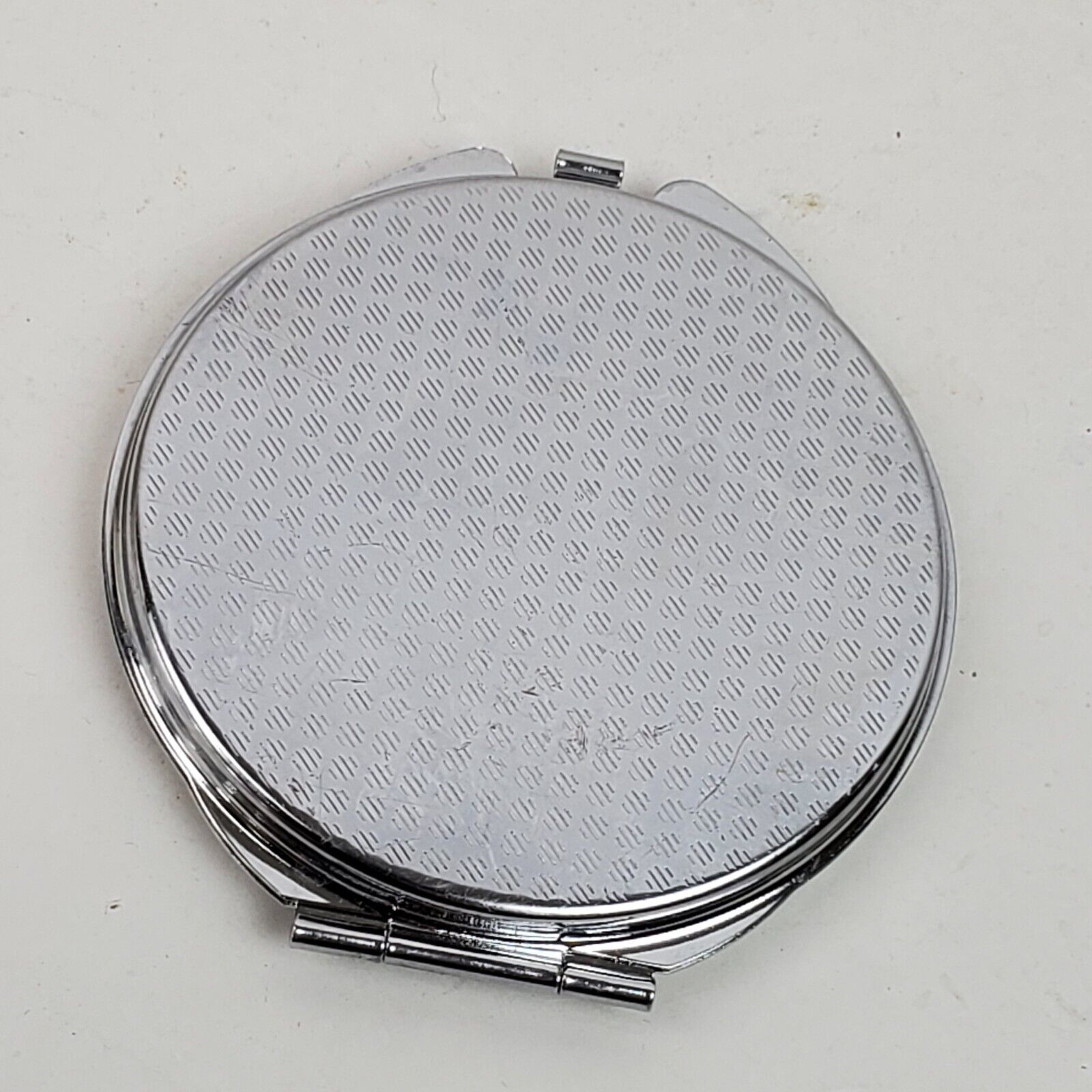 Vintage Animal Print Silver Tone w/ Black Compact 2.25 Inch Round