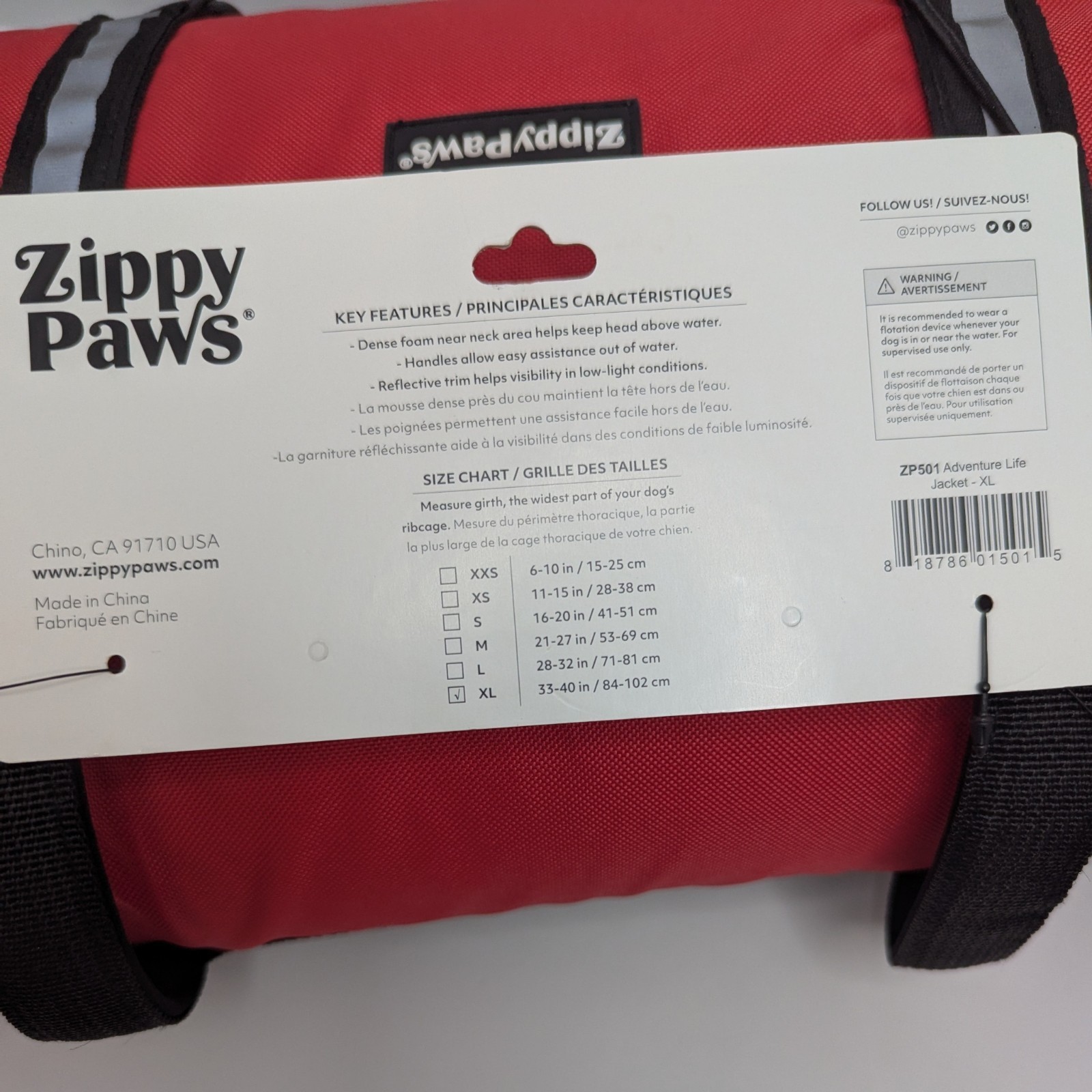 ZippyPaws Dog Life Jacket Extra Large Red Float Vest Reflective Swim Pet Safety