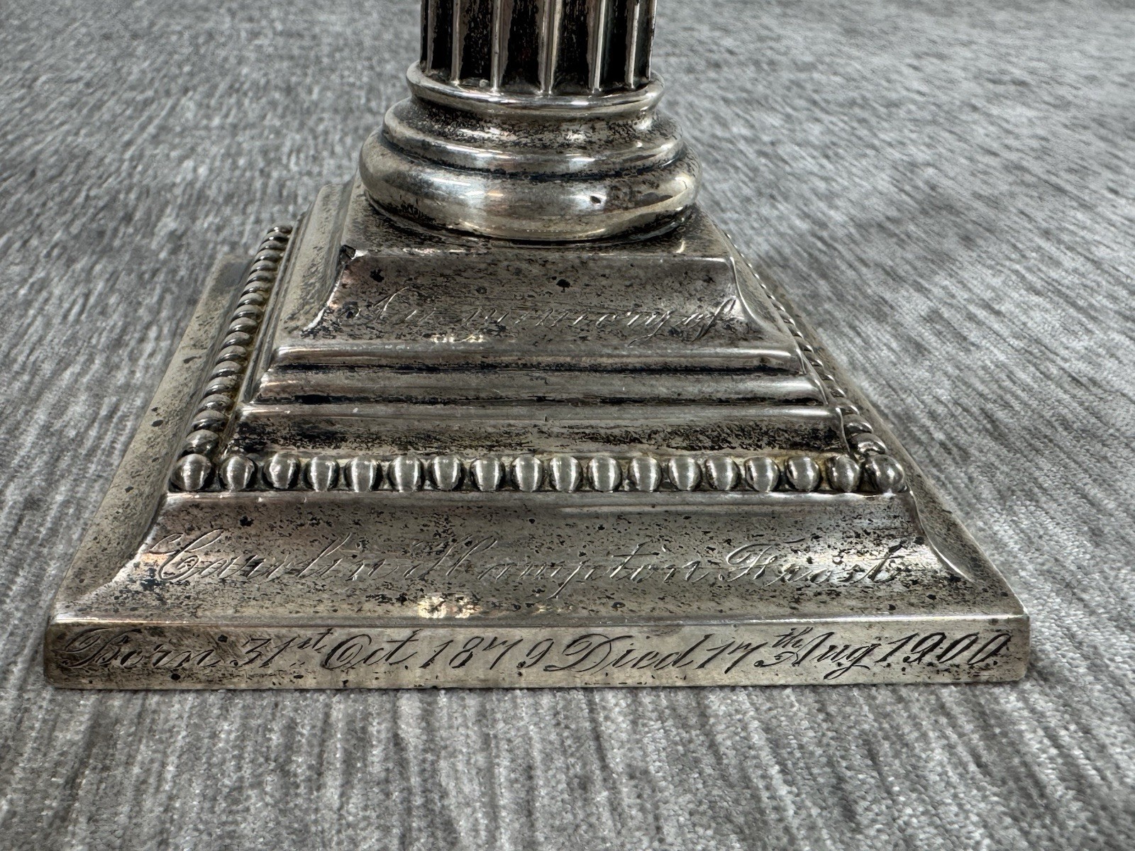 For sale is a Georgian by Gorham Sterling Silver Column Candlestick Engraved Neoclassical - A3208