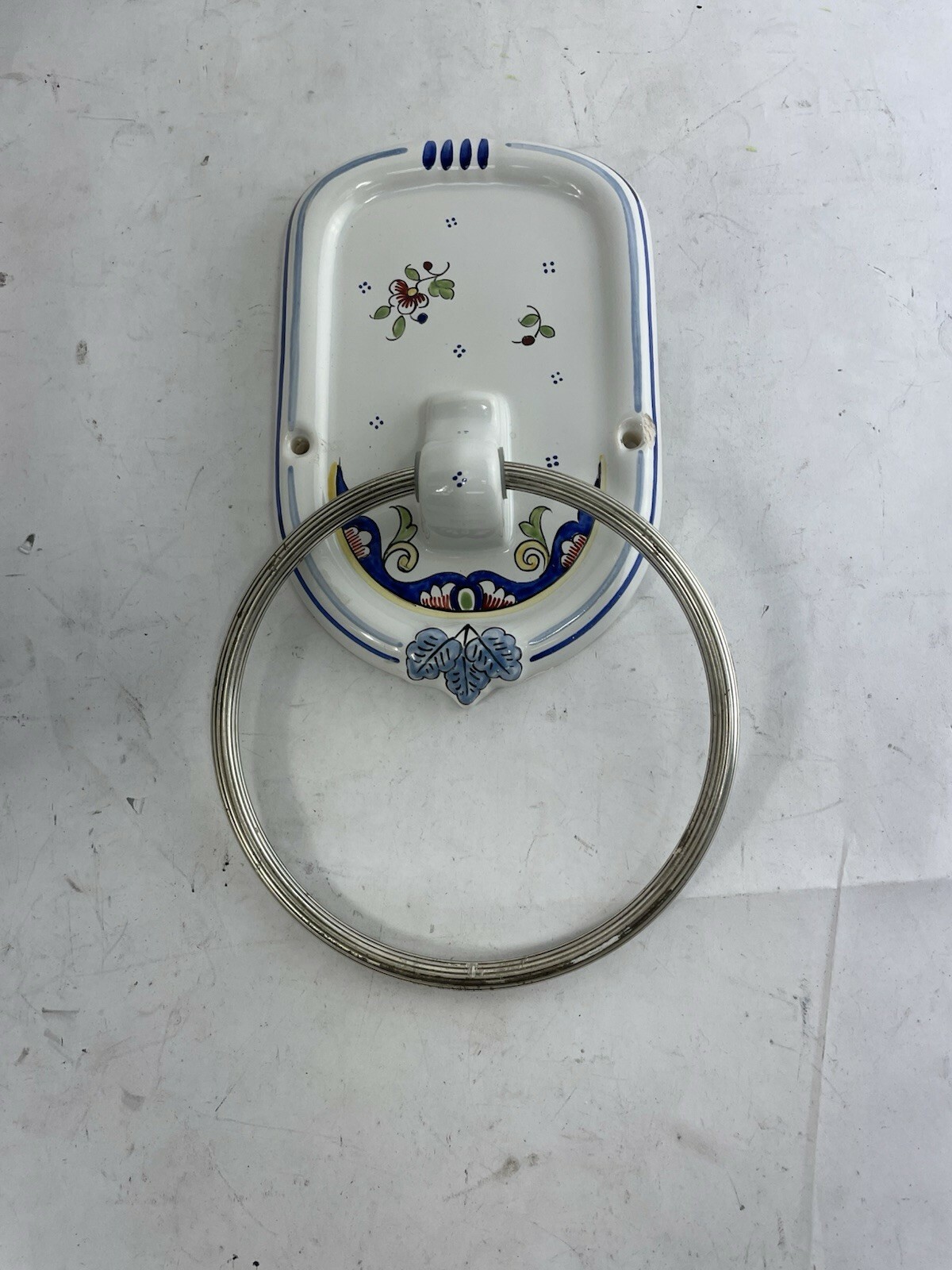French country powder room accent - Niche fountain sink in Vieux Rouen handpaint