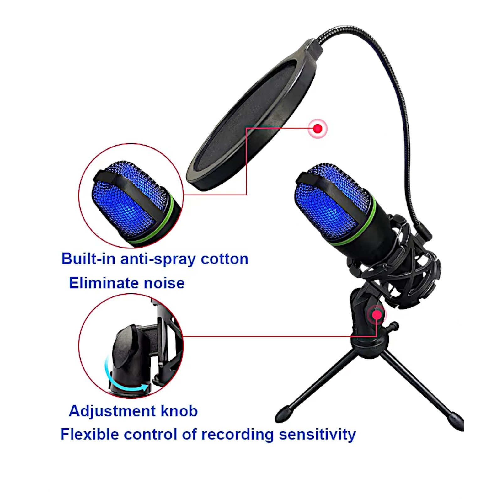 USB Condenser Microphone RGB Recording Mic Streaming Video Games Podcast Vocals