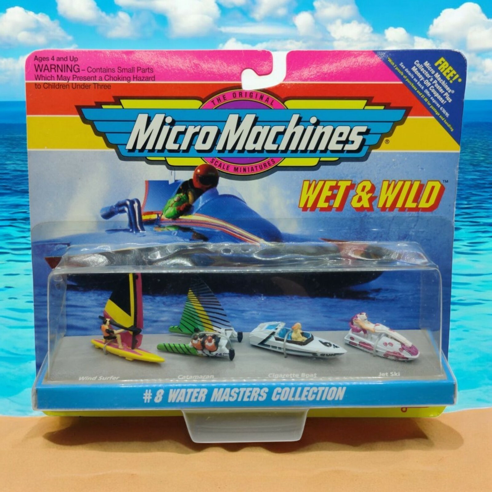 The Micro Machines Wet Wild Water Masters Collection 1993 by Galoob 75030 is a new old stock set of watercraft toys in a micro scale.