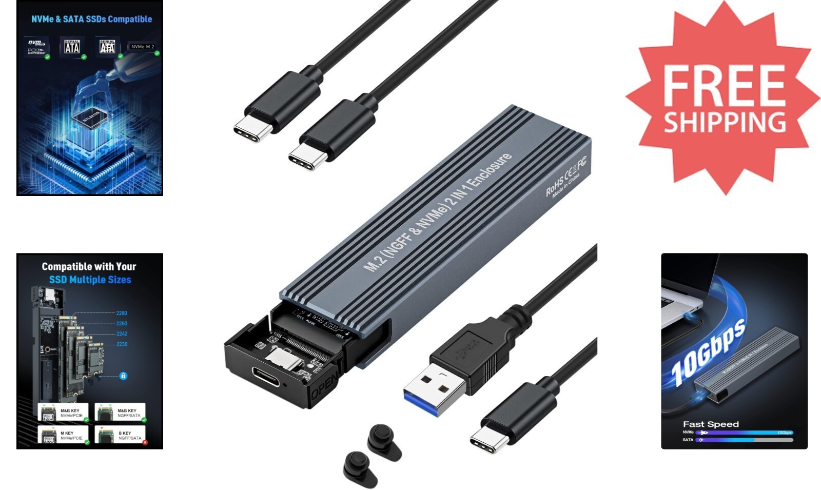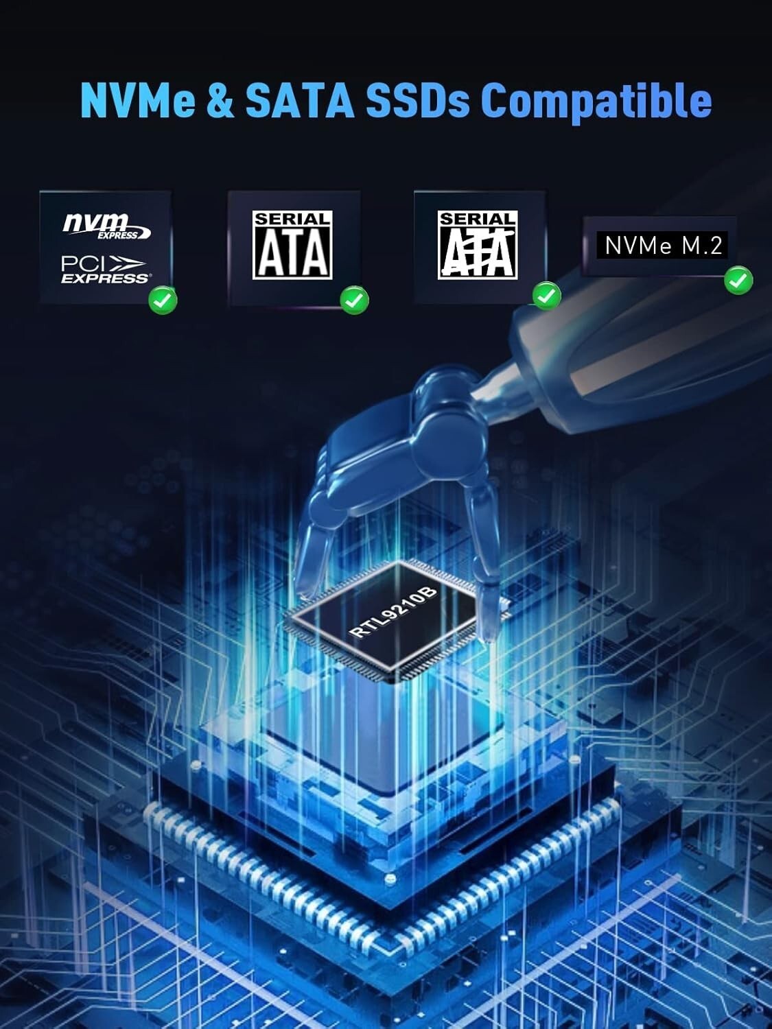 M.2 NVME and SATA SSD Adapter - Tool-Free, 10Gbps USB 3.2 for Efficient Cooling