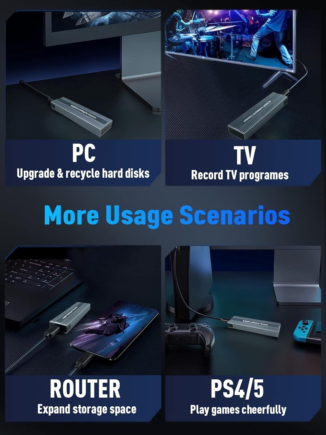 Designed for portability, this slim enclosure includes a tool-free setup?simply insert your SSD, secure it, and you're ready to go. The upgraded aluminum alloy heatsink with thermal pads provides excellent heat dissipation, complemented by a sleep mode that prolongs drive lifespan.