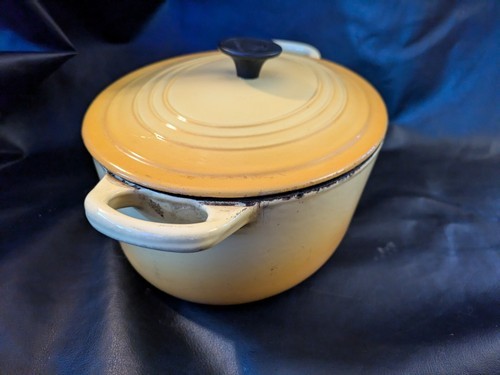 Vintage Le Creuset Yellow C Oval BC Lid Dutch Oven 2.5 Quart 10 Inch Cast Iron