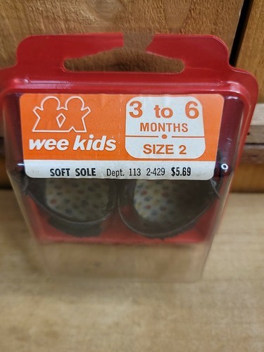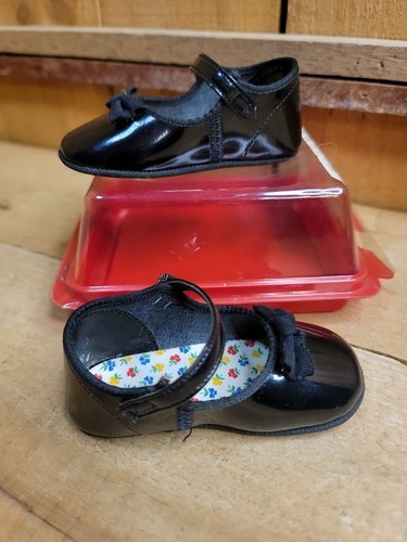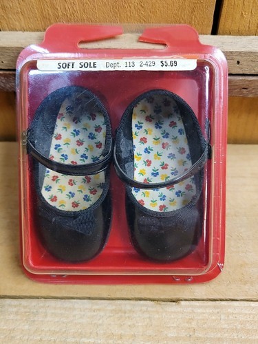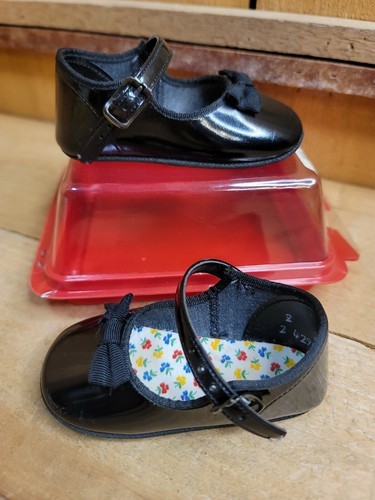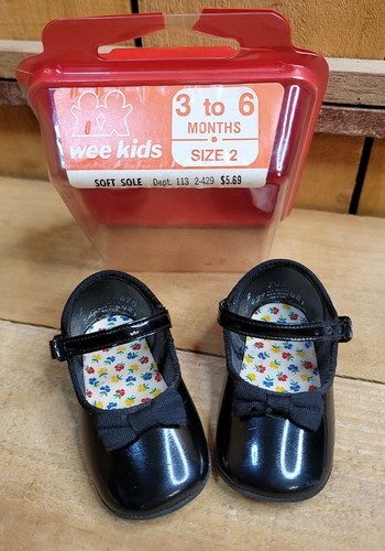 VTG 70s WEE KIDS Black Mary Jane Soft Sole Infant Dress Shoes 3 - 6 months Sz 2