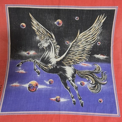 VTG 1980s Pegasus Flying Winged Horse in Space 22x21 Bandana Made in USA