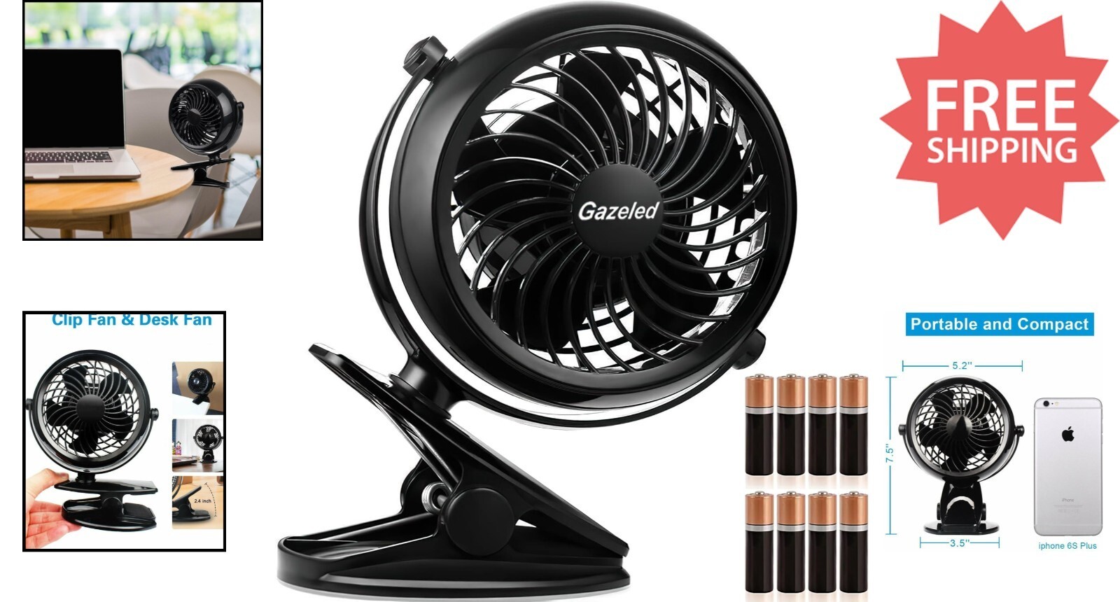Features: 360 Degree Rotation,Quiet Operation,Rechargeable,Portable,Clip-on,Stroller Fan Battery Operated,Battery Powered Clip on Fan,Clip Fan and Desk Fan 2 in 1,Strong airflow,Ideal for personal space cooling