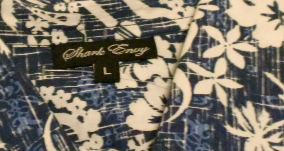 Shark Envy Men's Large Hawaiian Tropical Print 100% Cotton Blue White