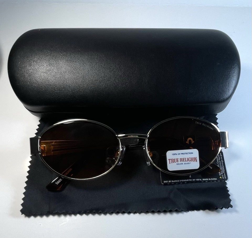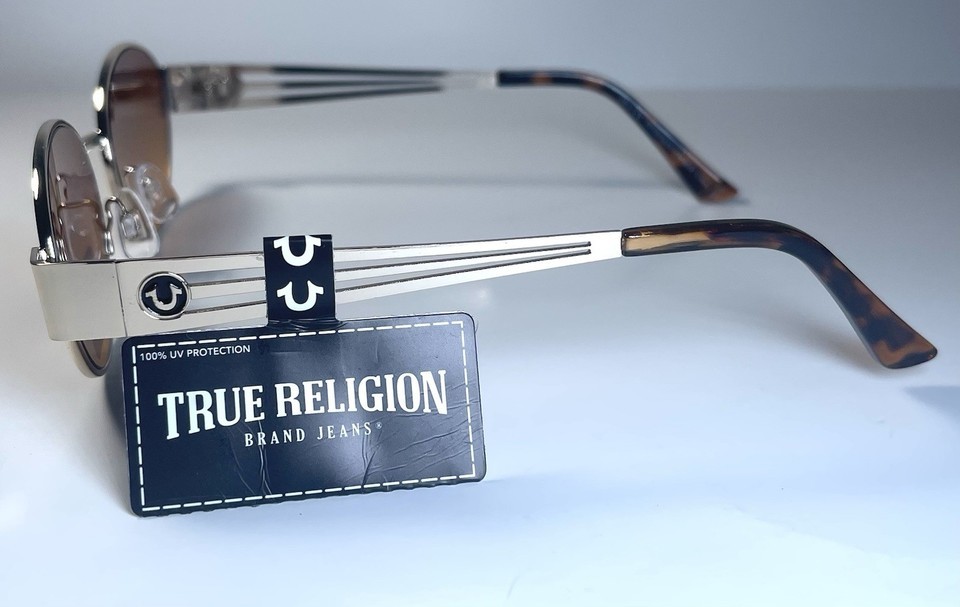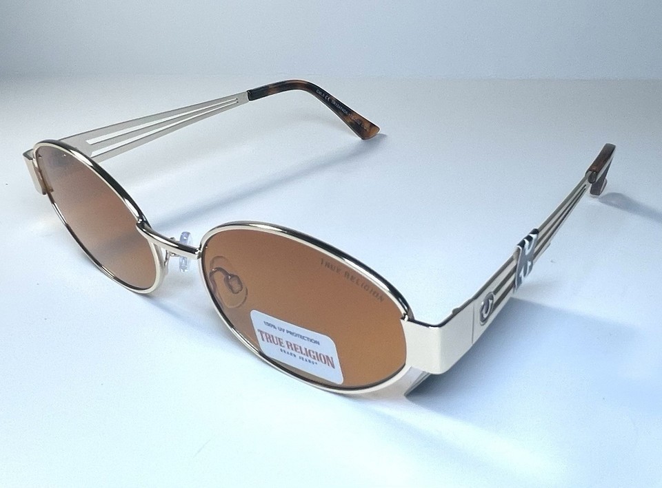 NEW TRUE RELIGION Gold Metal Logo Classic TR12474CK Sunglasses + Case