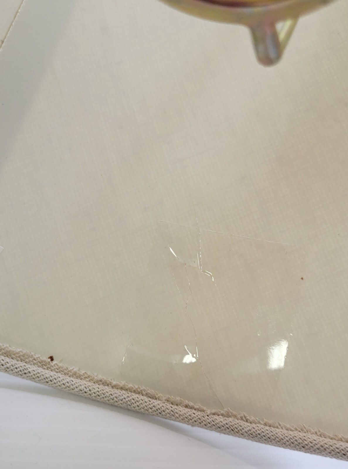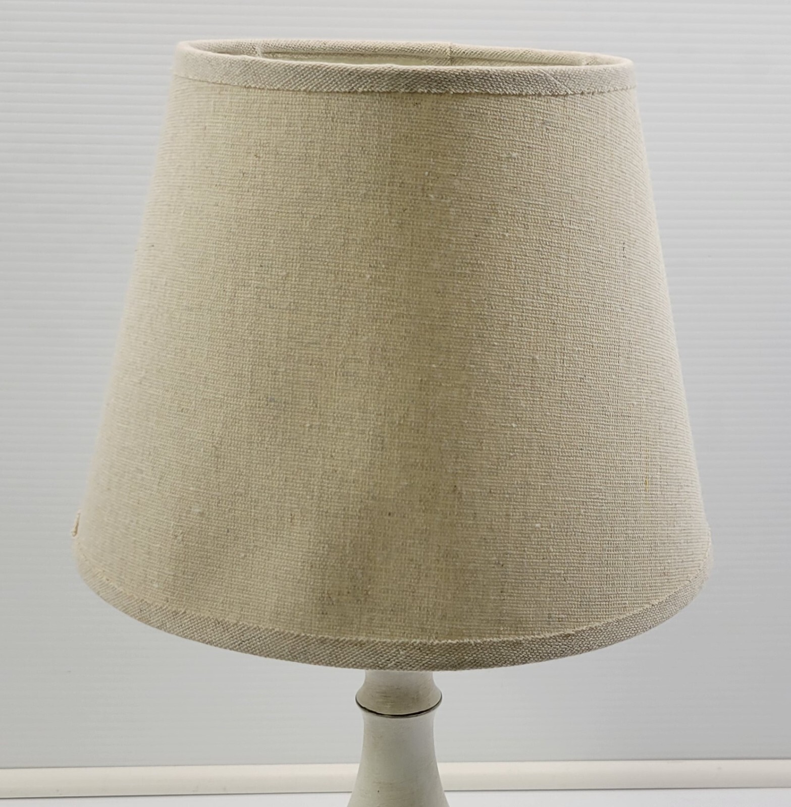 Lamp is in overall good used condition. The shade has sections of slight waviness and the inside has a piece of tape to avoid cracking but still overall good condition.