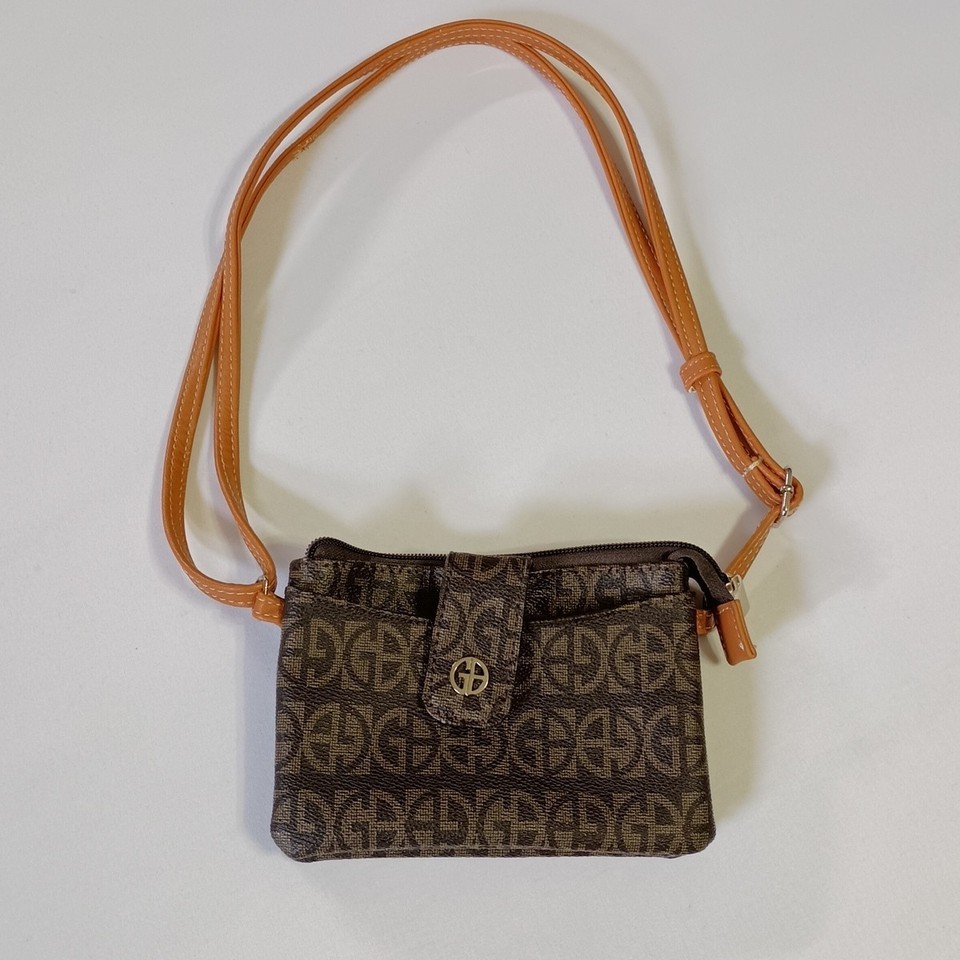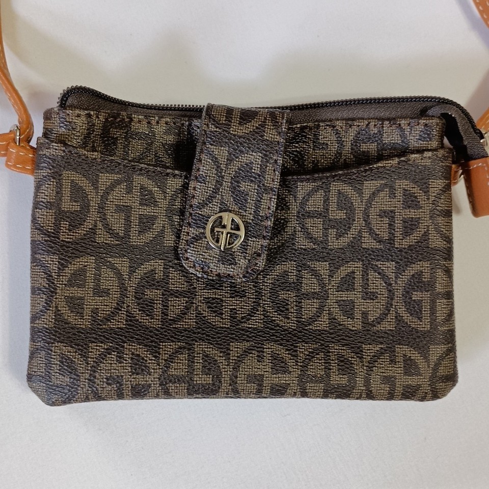 Giani Bernini Womes Brown Faux Leather Block Signature Short Strap Mini Satchel