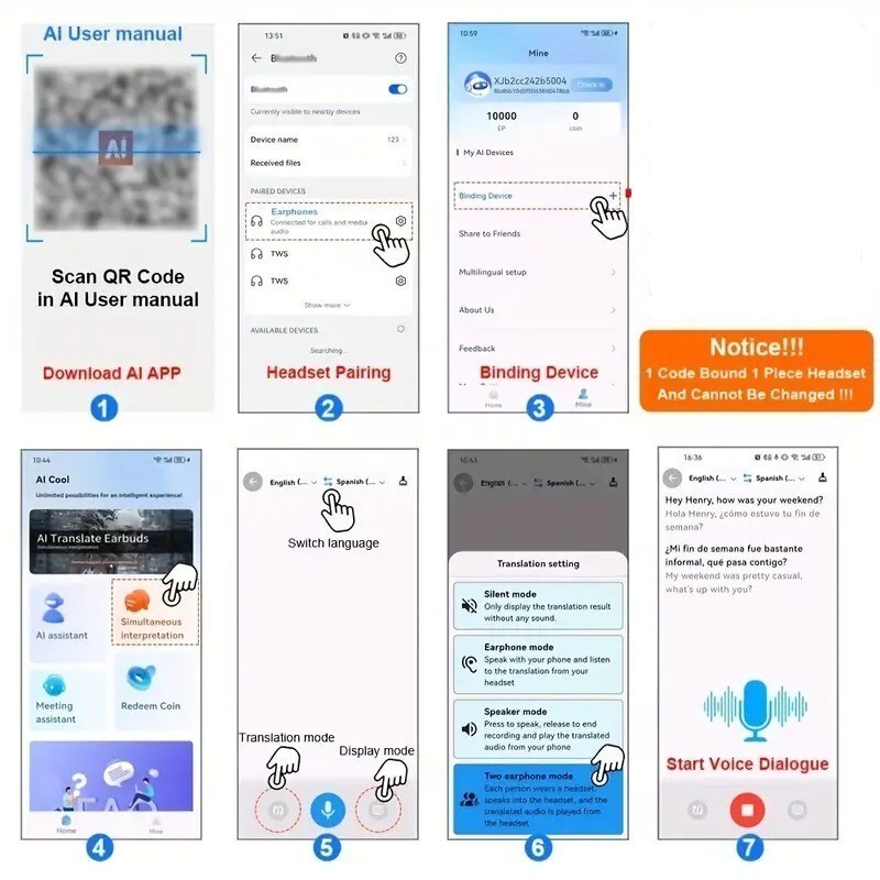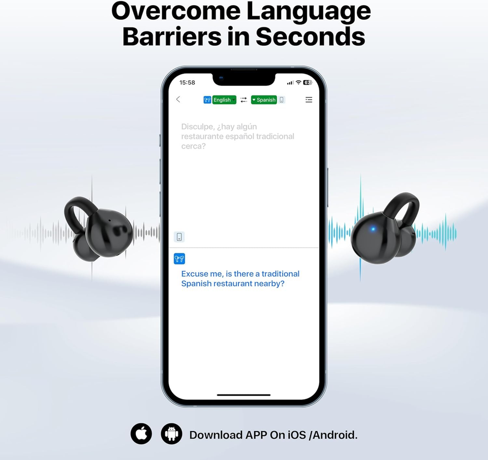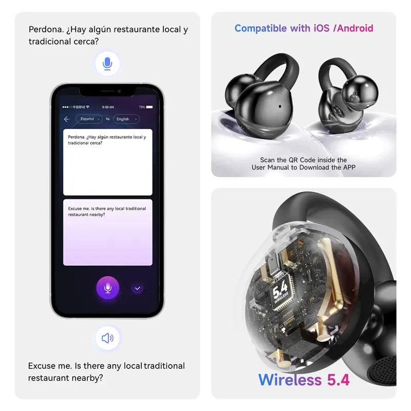 Two Way Translator Earbuds 150+ Languages Real Time Online Translation Earpho...