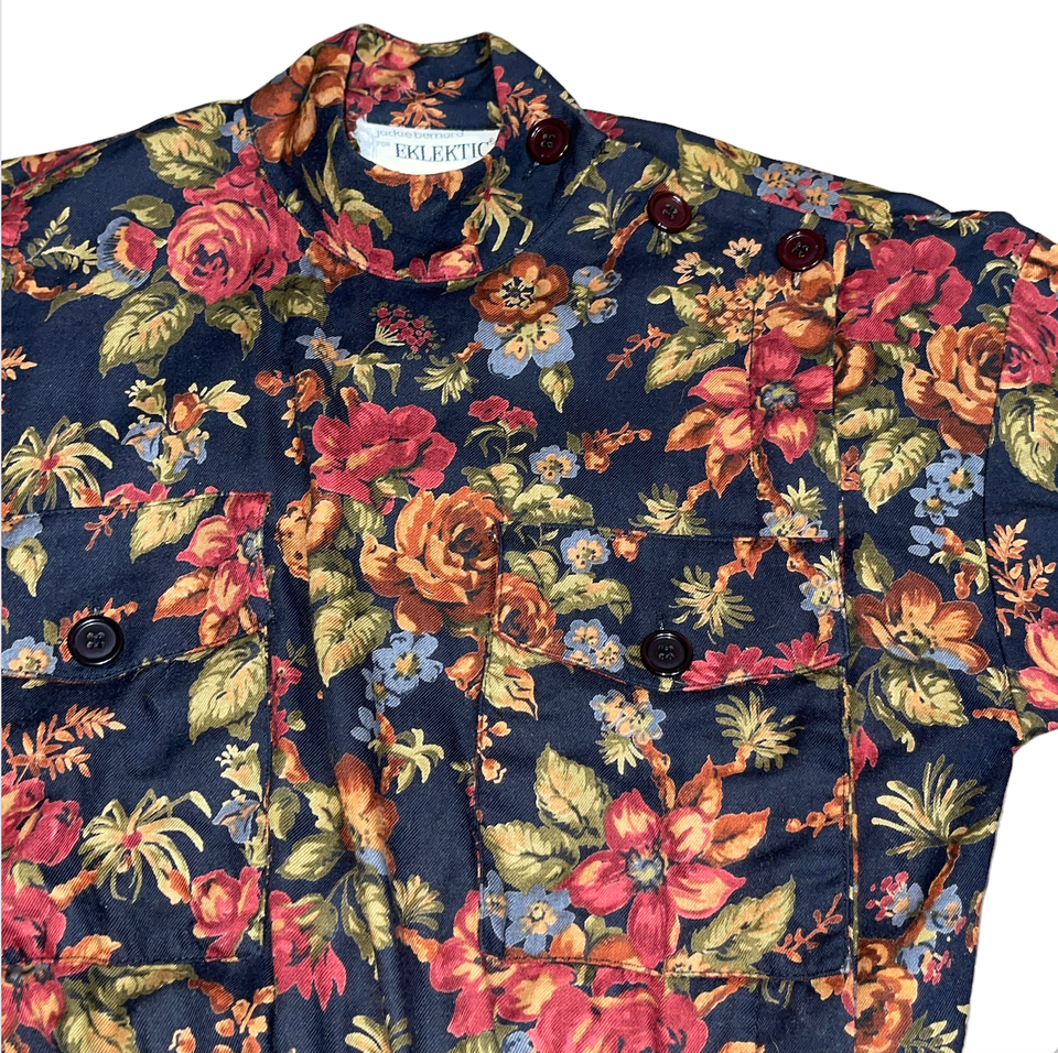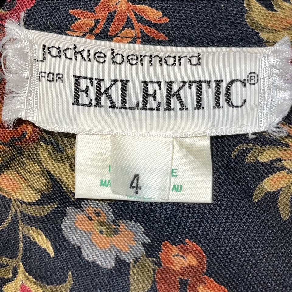 Vintage 80s Viscose Black Floral Dress By Jackie Bernard For Eklektic Size 4