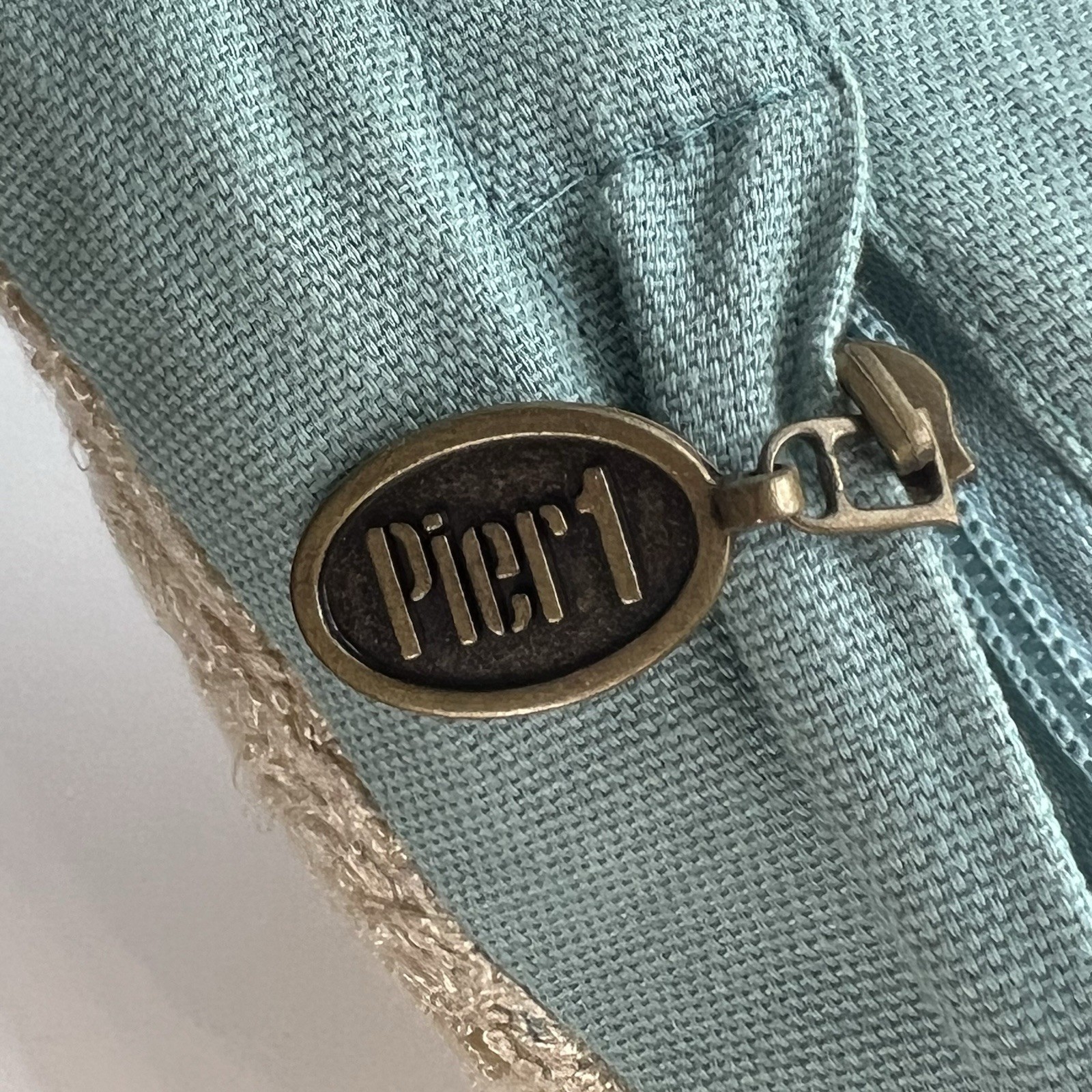 The Pier 1 Imports Sheep Velvet Applique Pillow is a charming addition to any farmhouse-style decor, featuring a teal, gray, and tan color palette with a velvet material and applique detailing. This square-shaped throw pillow, measuring 13 inches in size, comes with an insert included and a zip closure for easy maintenance. The design incorporates elements of farm life, farm animals, sheep, and animals, making it a unique and personalized touch to your home's living space.
