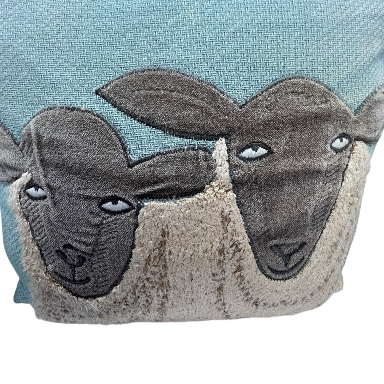 Pier 1 Imports Sheep Velvet Appliqué Pillow 13″ Insert Included Teal/Gray Farm