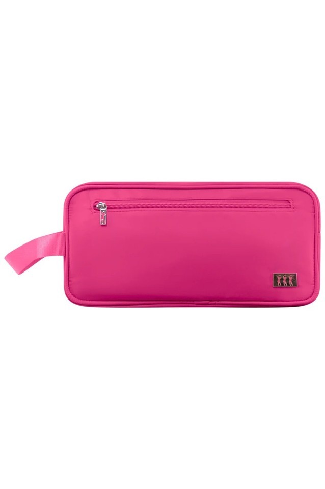 Experience the epitome of luxury and practicality with the Surprizeshop Pink Ladies Golf Shoe Bag adding a sophisticated touch to your golfing accessories. Expertly crafted with attention to detail, this bag is lined with elegant Lady Golfer fabric, Internal shoe divider, vents, handy exterior pocket and satin nylon carry handle in tonal Pink. The internal divider keeps your golf shoes neatly organized and secure while making transportation to the club effortless. Whether you're hitting the course or storing your shoes between rounds, this bag offers both style and functionality in one perfect package.