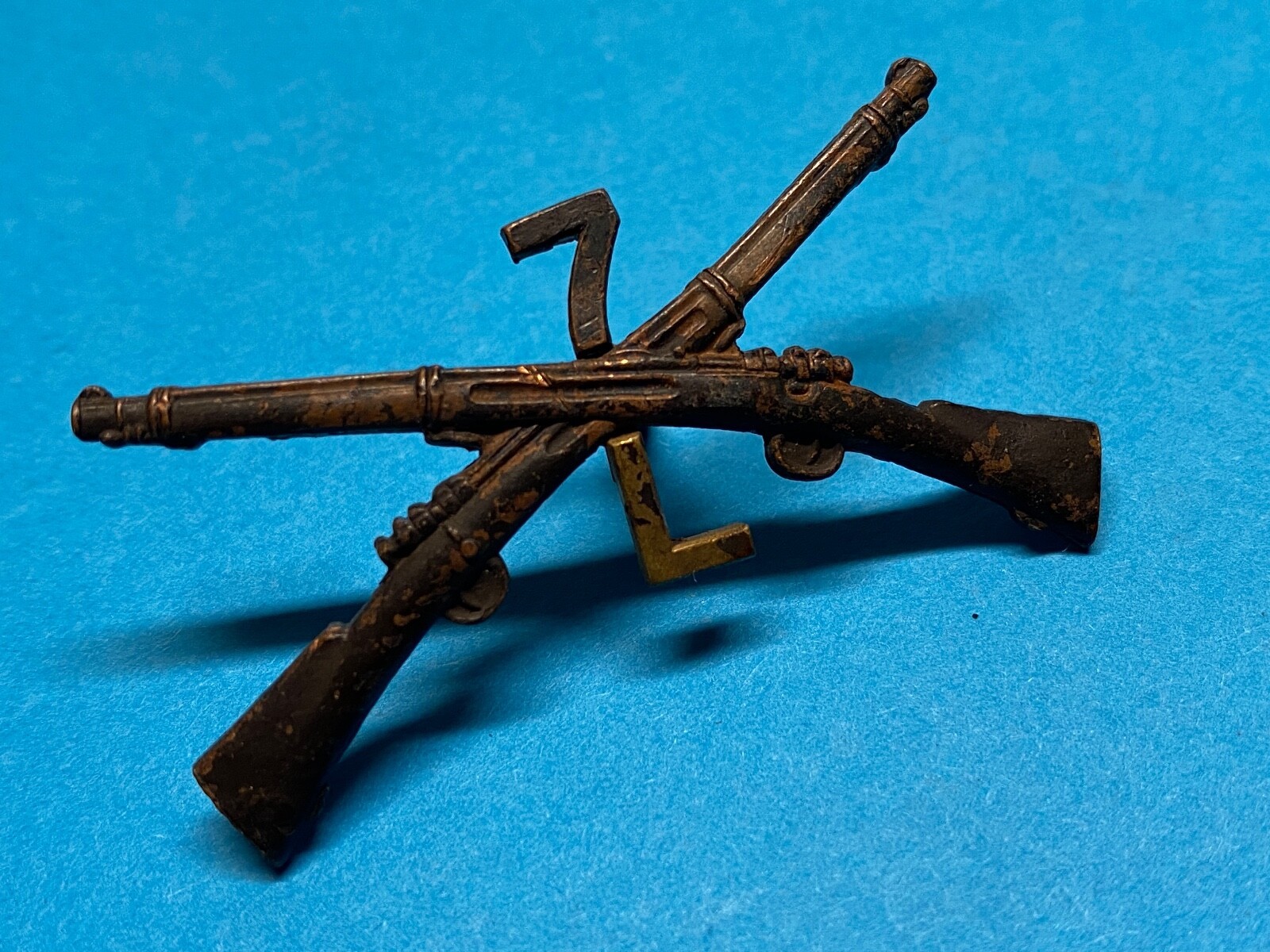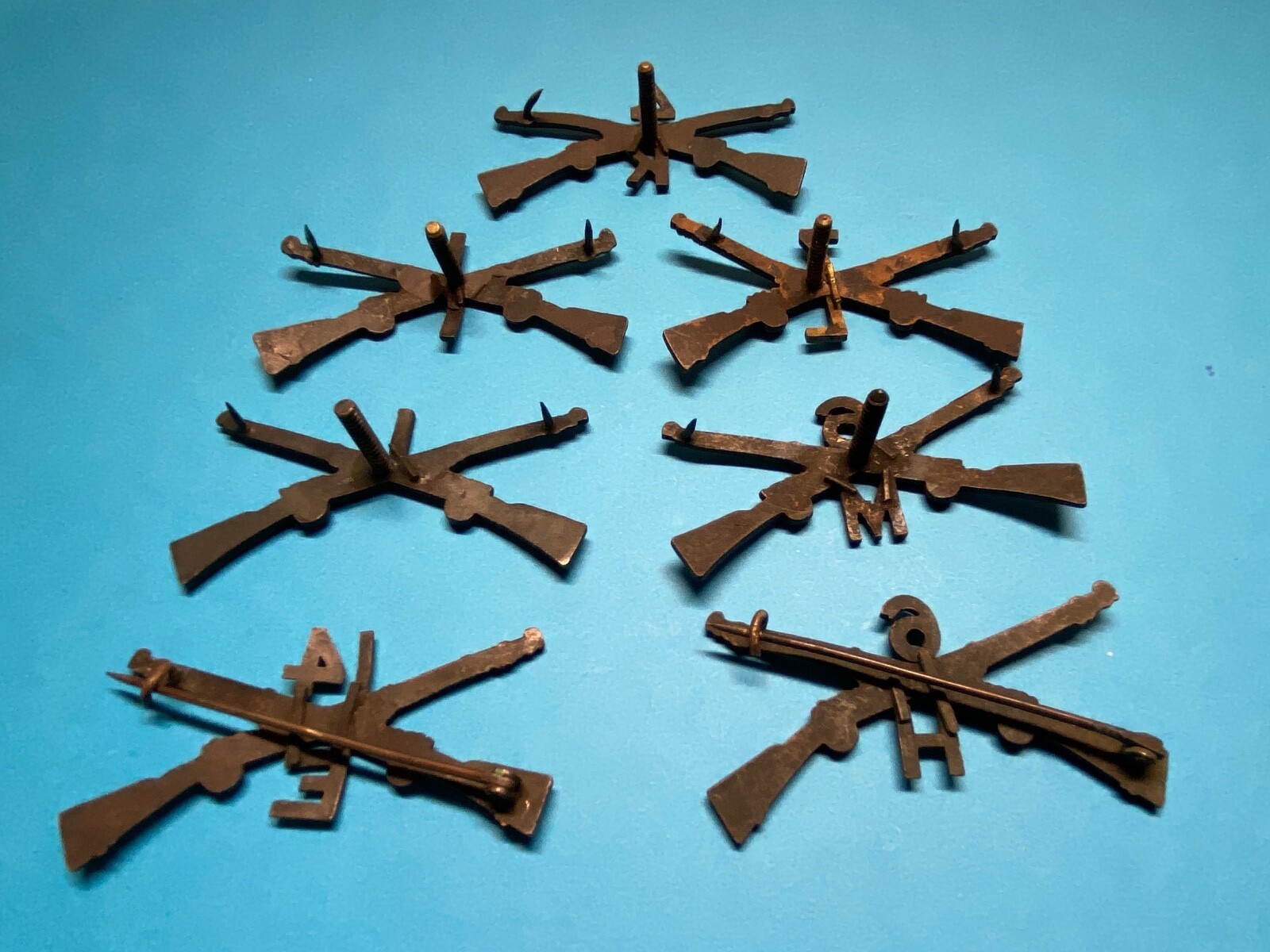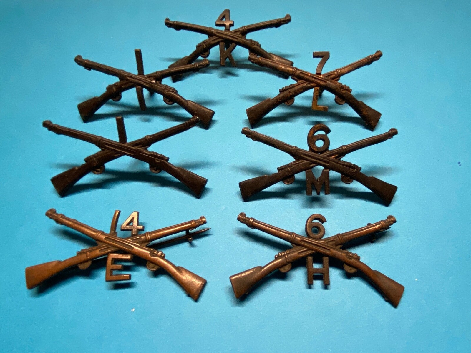 WWI, U.S. ARMY, OFFICER, INFANTRY, COLLAR AND CAP DEVICES, GROUPING OF 7