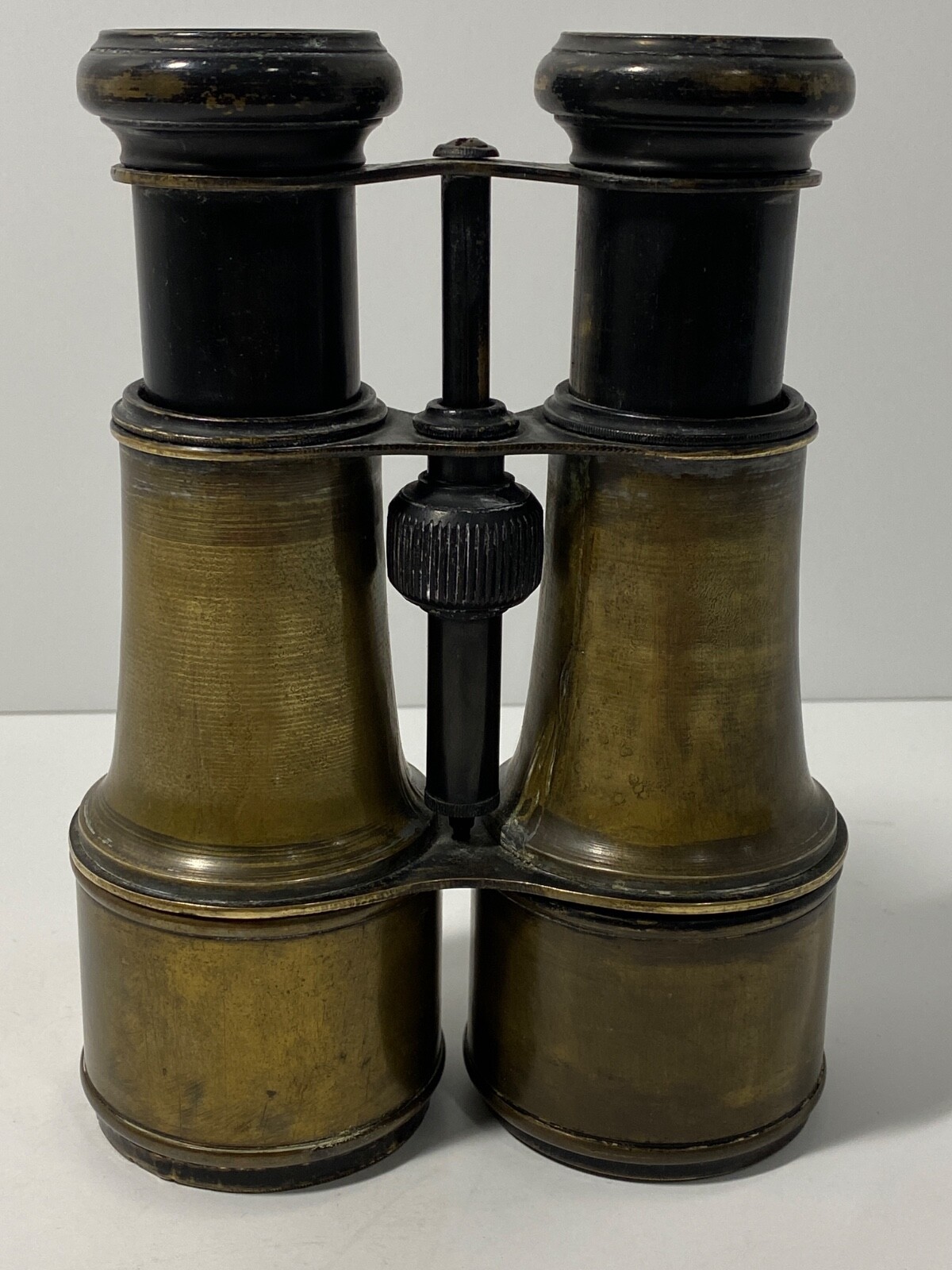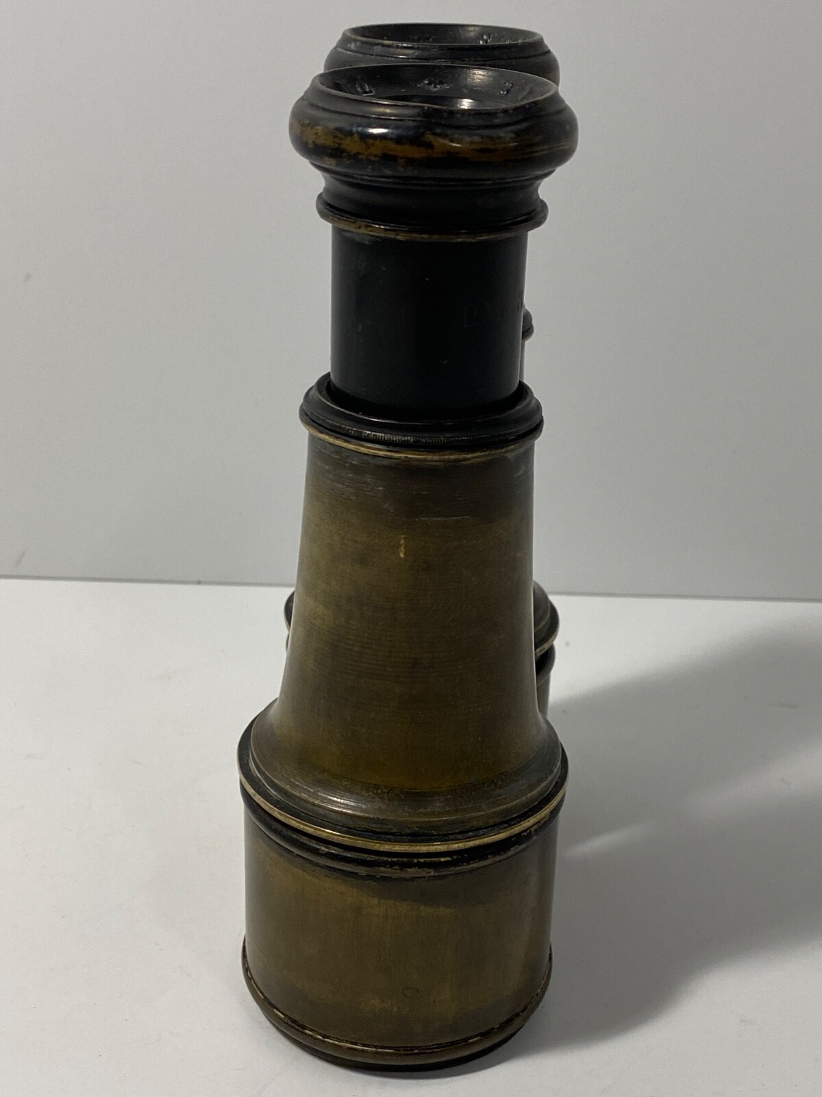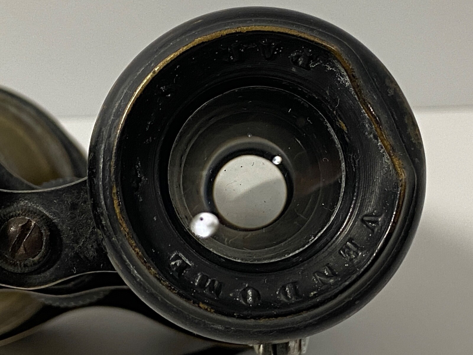This is a high-quality binoculars made by the French maker "VENDOME PARIS" (marked on eyepieces) These were designed for land use (not very water resistant) and have telescoping front sun shadow sleeves for bright day use and are engraved DAY NIGHT on a focus sleeve. These are quite powerful, about X7 and have clear optics without evidence of mold or distortion. It has a century of patina on the outside without notable dents (*the left eyecup does have a dent). All mechanisms and features work freely. This is about 8" max / 6 1/8" minimum long with about 2 3/8" diameter front optics sleeves. This is readily useable and a super decorative look or fabulous if refurbished.