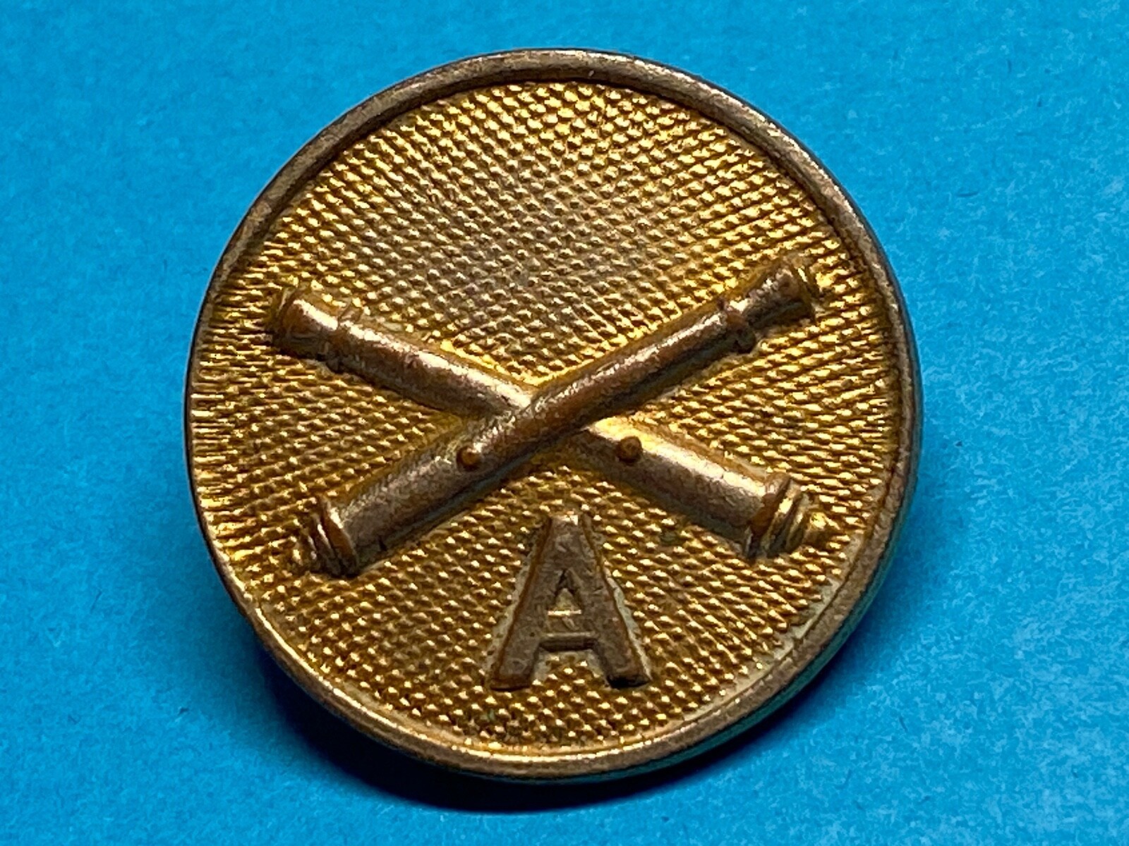 CIRCA WWI ? 1924, U.S. ARMY, TYPE I, GILT, COLLAR DISK, ALPHA BATTERY, ARTILLERY