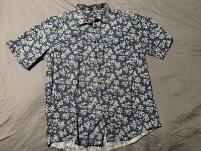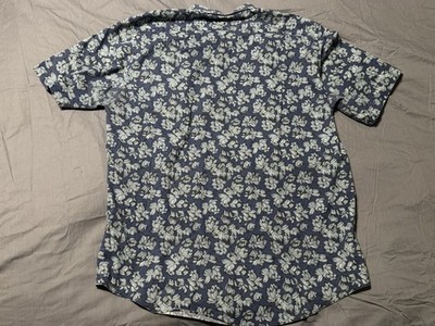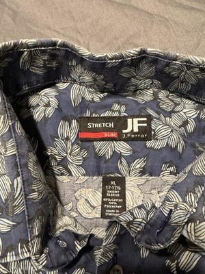 JF J. Ferrar Men’s XL Short Sleeve Slim Fit Stretch Shirt Navy White Floral
