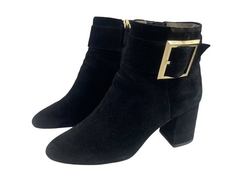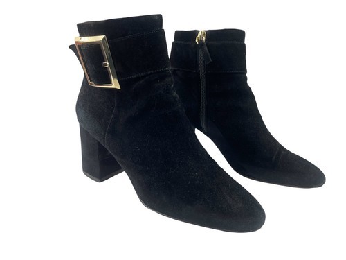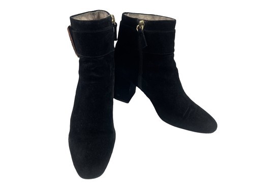 Louise et Cie Boots Women 8M Babette Shoes Black Suede Block Heel Buckle Bootie