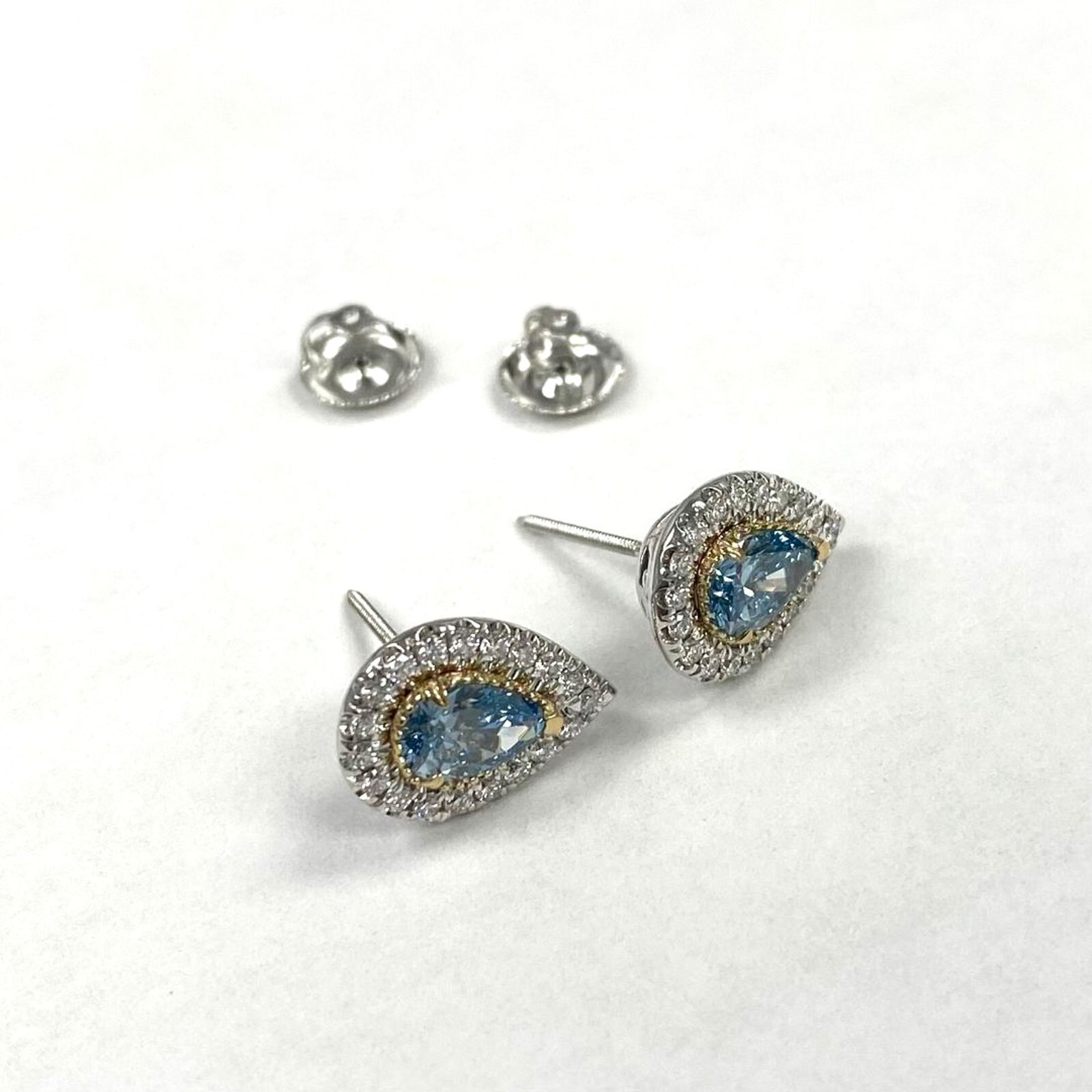 1.32 Ct Pear Lab Grown Blue Diamond Halo Stud Earrings 14k White Gold