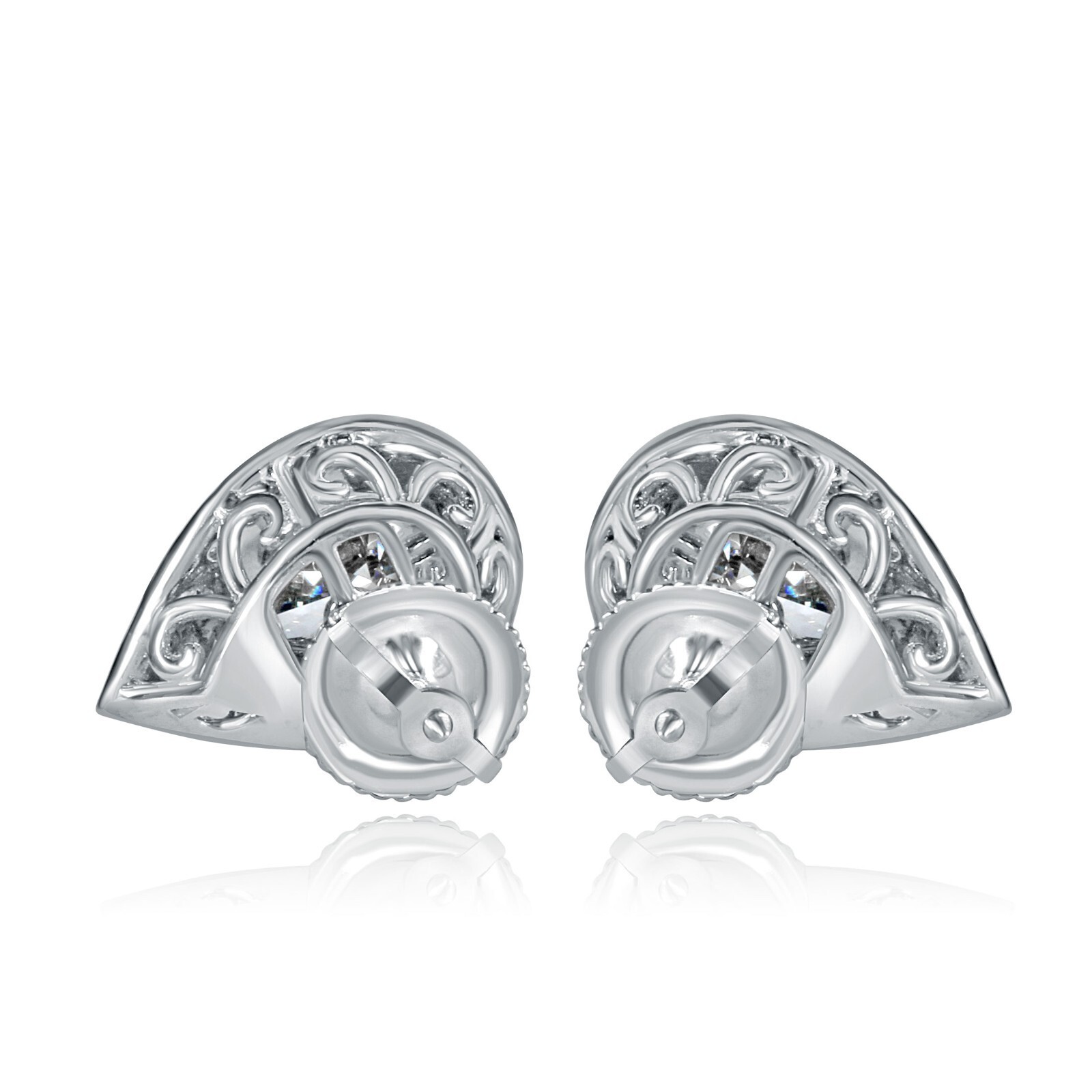 Classic earrings features a central pear brilliant cut lab grown blue diamond surrounded by smaller diamonds in a halo design, all set in 14k white gold with screw back closures for security. The "round brilliant cut" is a specific style of cutting a diamond that maximizes its Sparkle and brilliance. Halo Diamonds: These are smaller diamonds surrounding the center diamond, forming a halo-like effect. Screw back closures feature a threaded post that screws into a threaded backing, providing a secure fit. 14k white gold is a It's a popular choice for jewelry due to its durability and classic appearance.